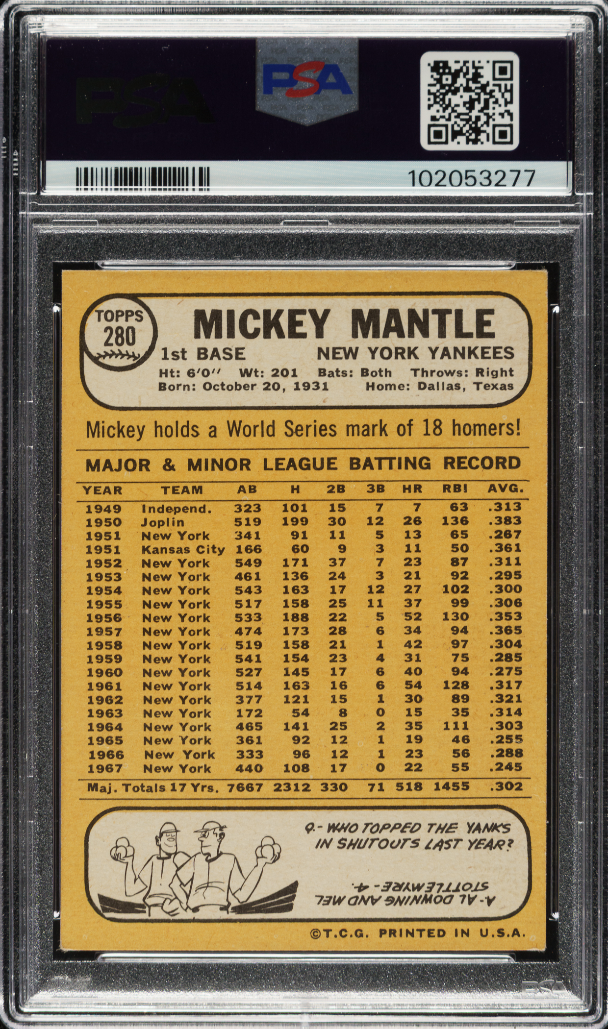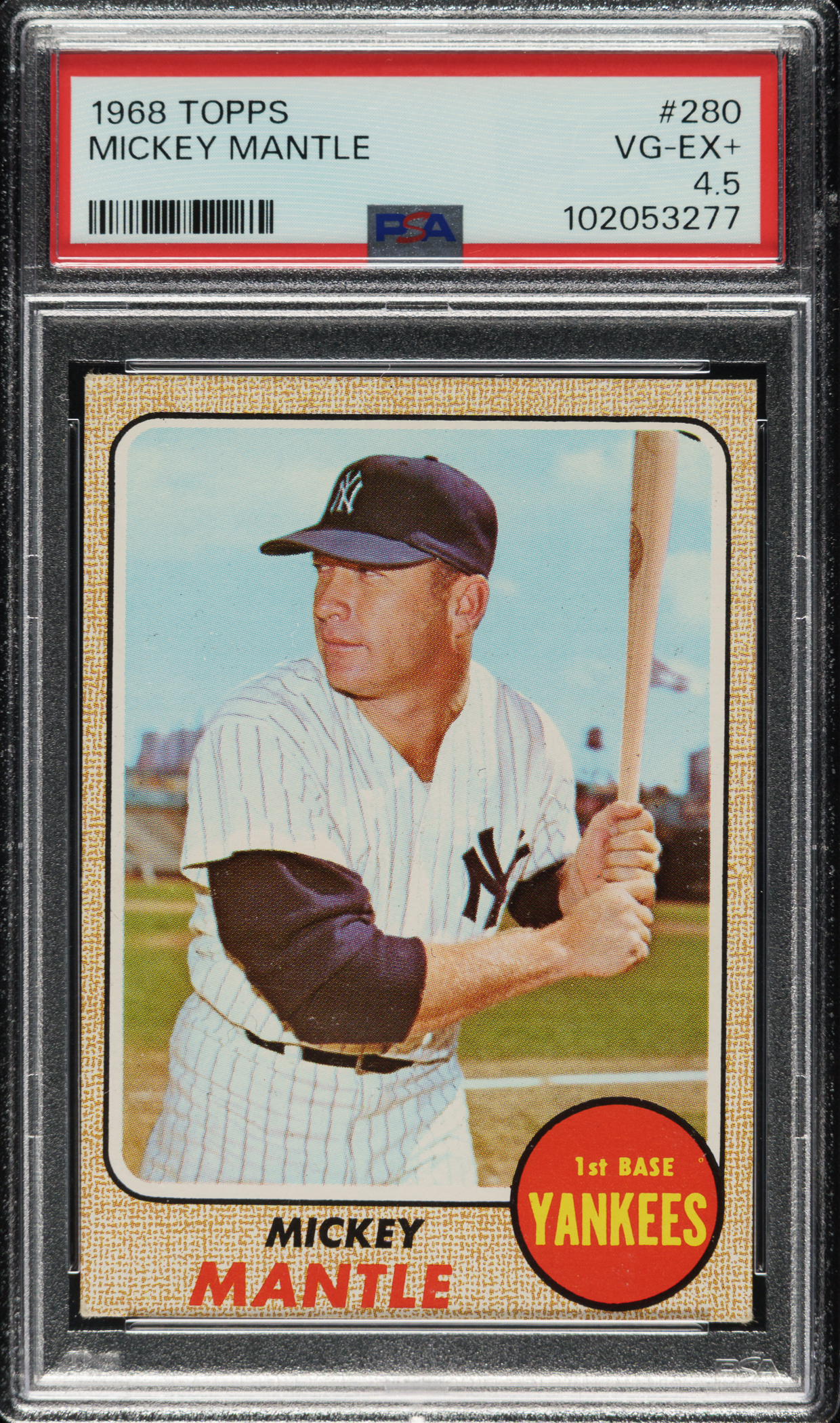 Graded VG-EX+ 4.5 by PSA. New York Yankees Hall of Famer Mickey Mantle.