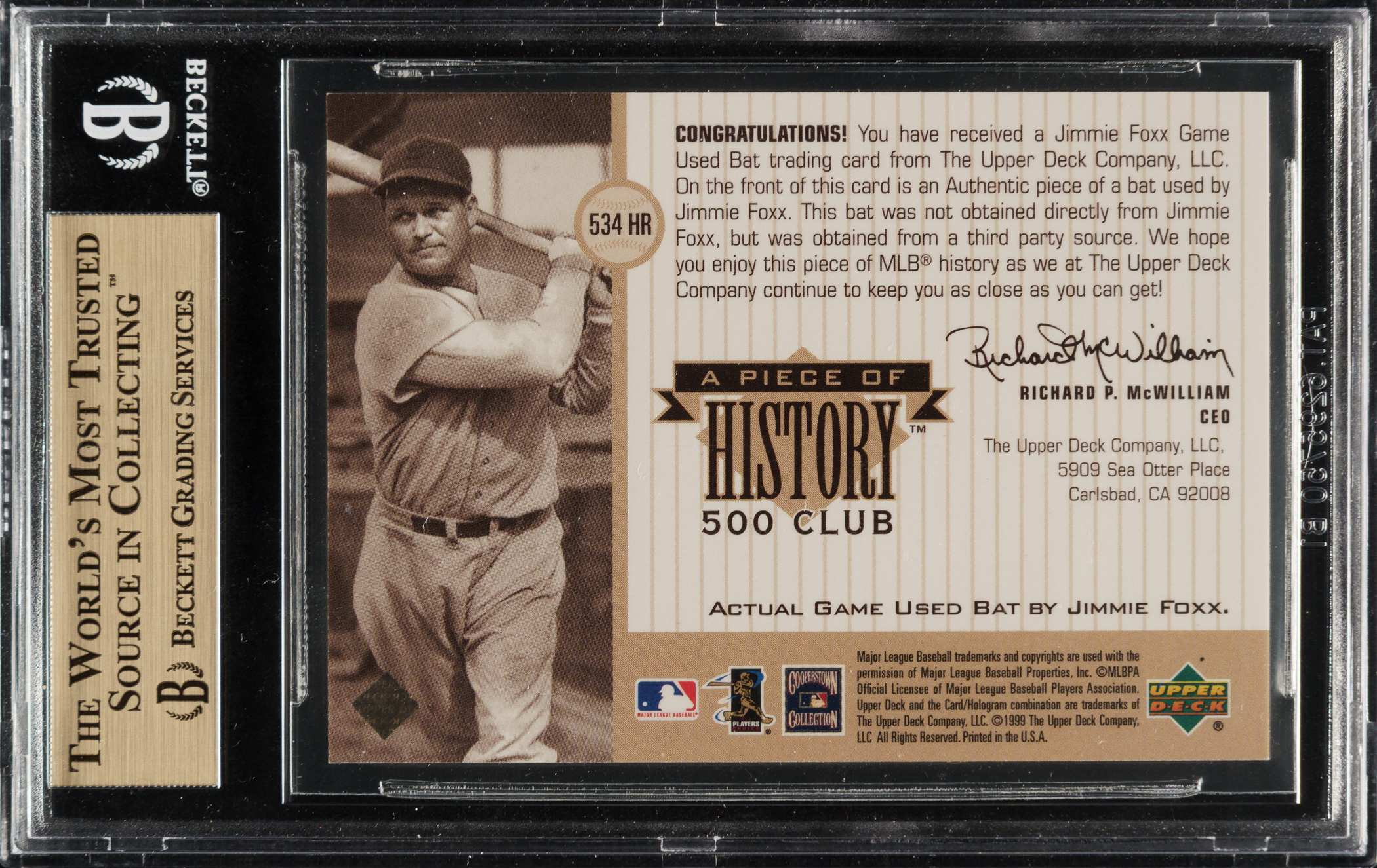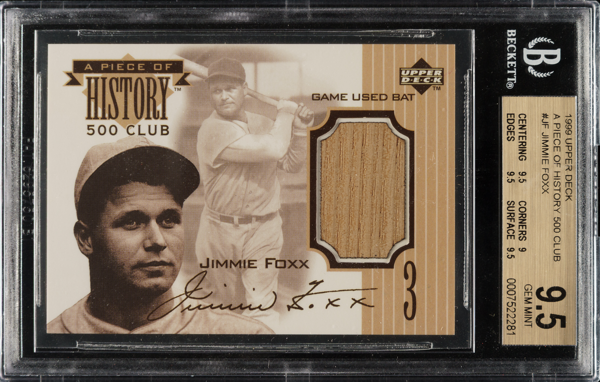 Graded GEM MINT 9.5 by BGS. Philadelphia Athletics Hall of Famer Jimmie Foxx.