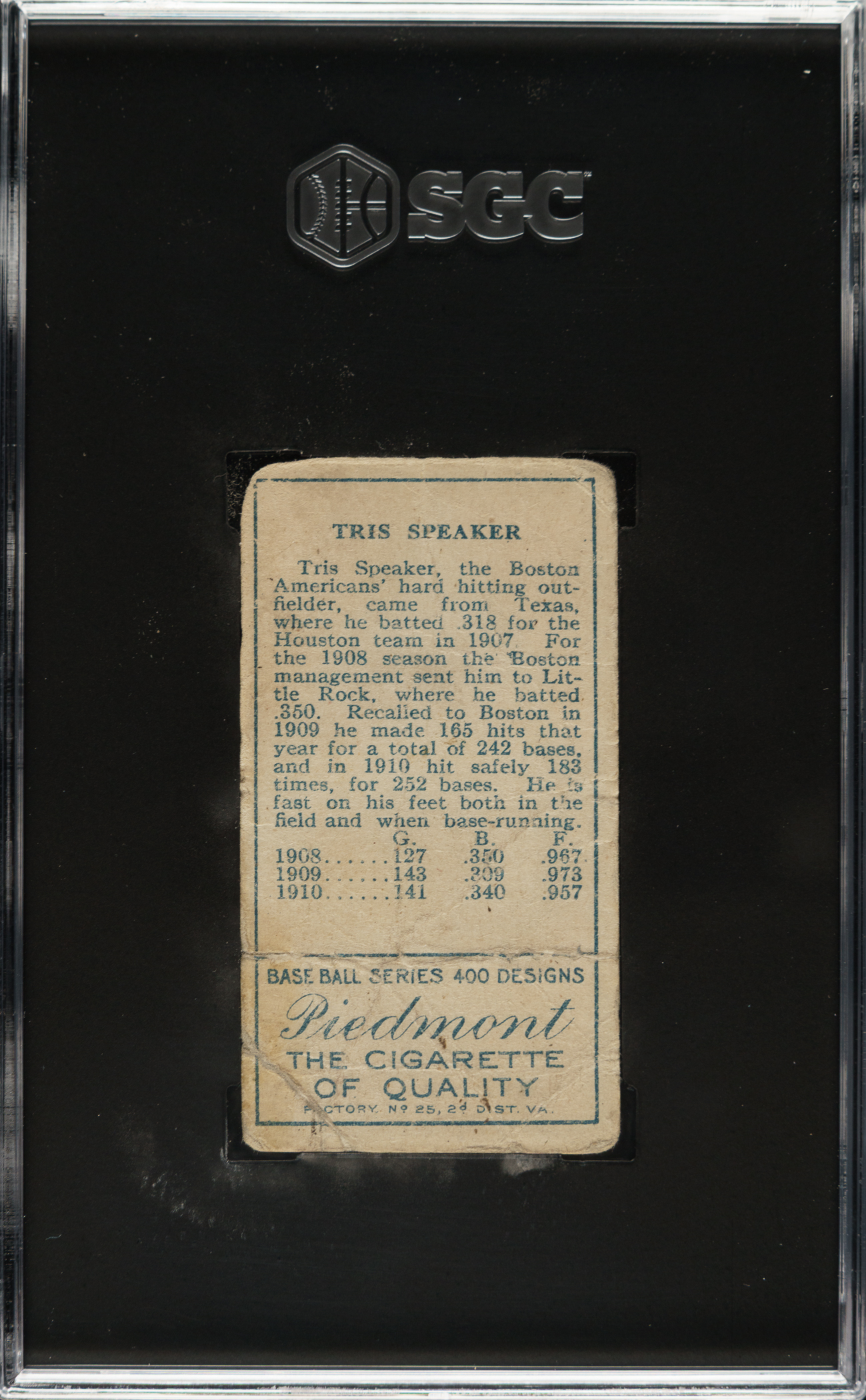 Graded POOR 1 by SGC. Boston Red Sox Hall of Famer Tris Speaker.