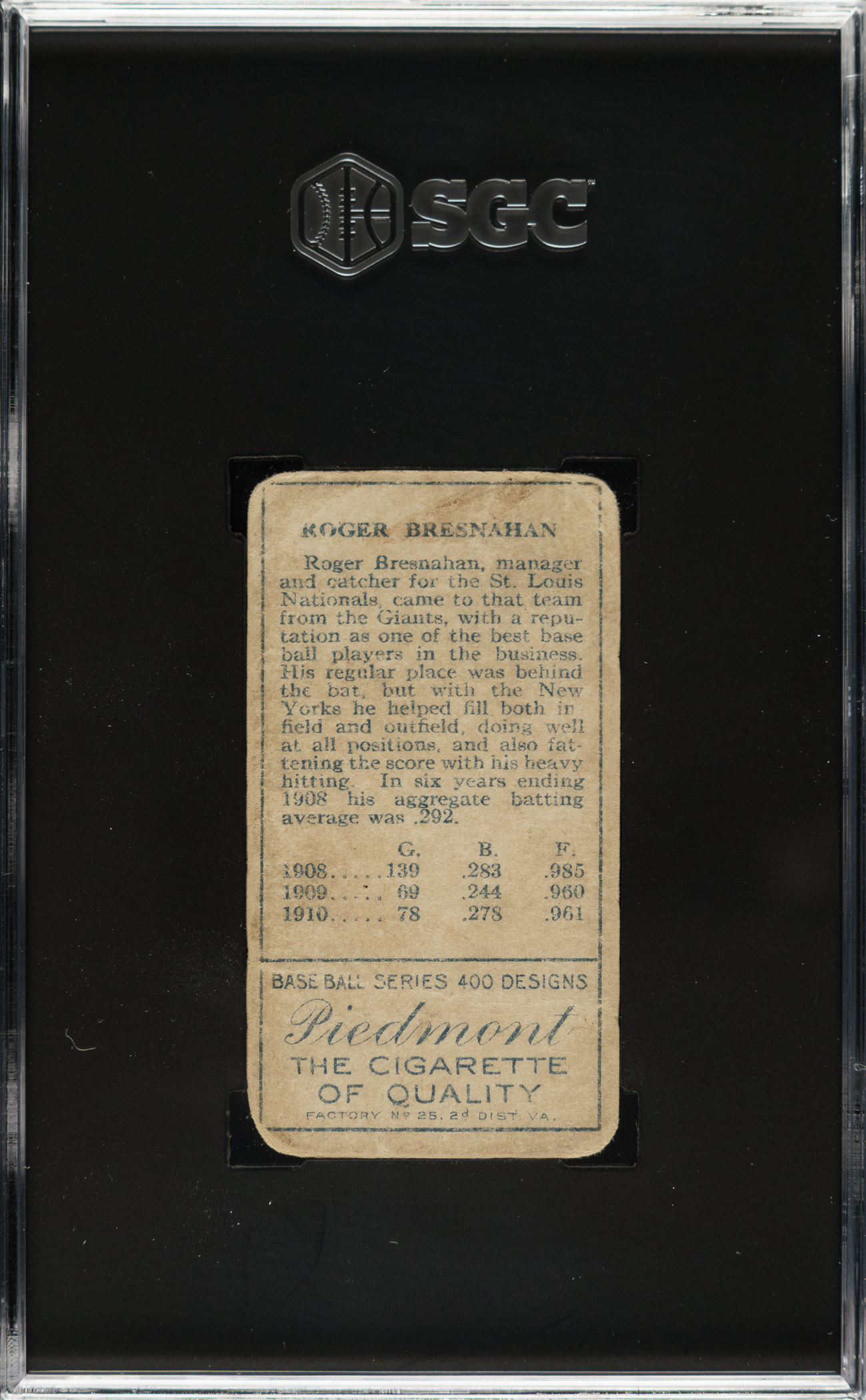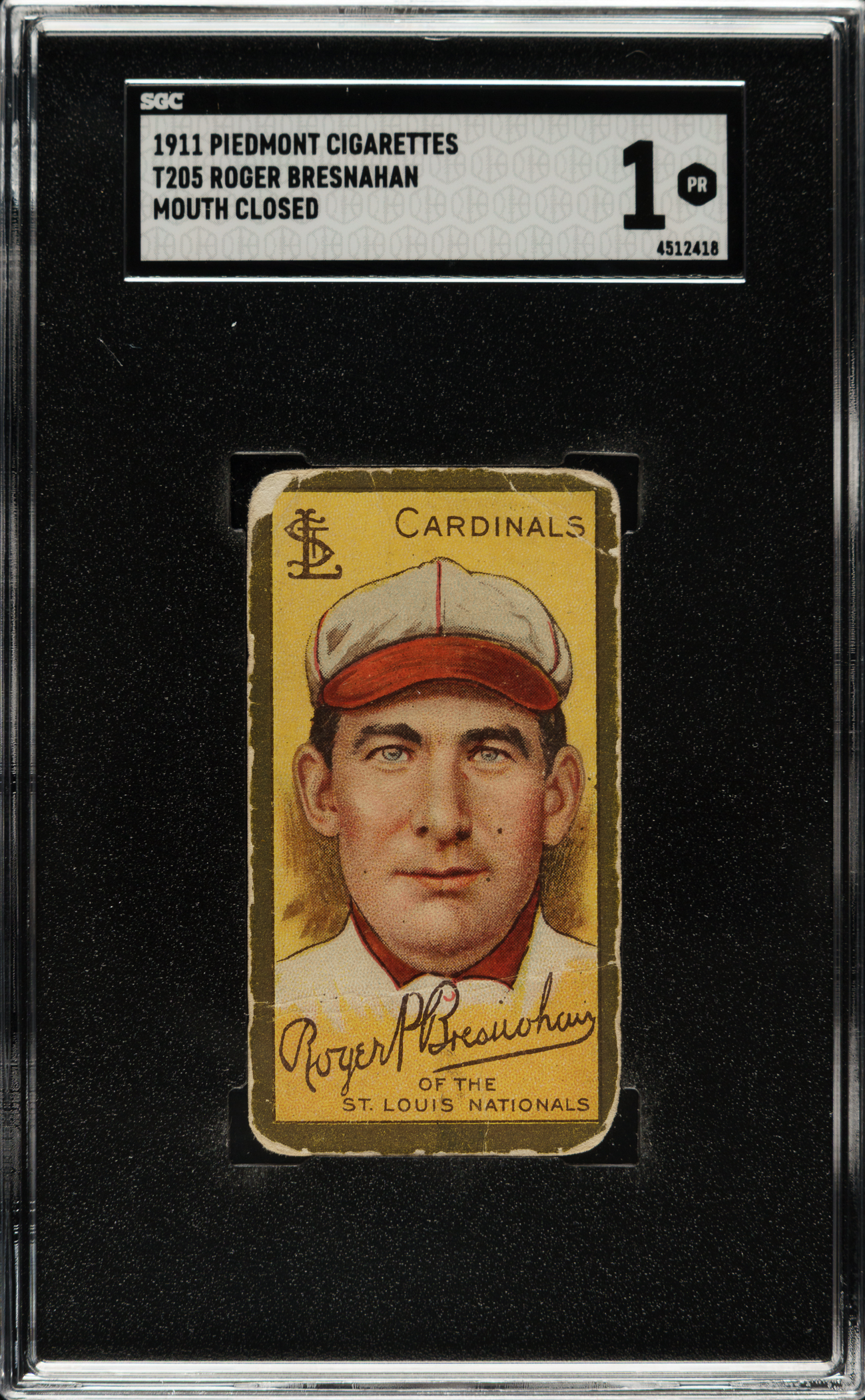Graded POOR 1 by SGC. St. Louis Cardinals Hall of Famer Roger Bresnahan.
