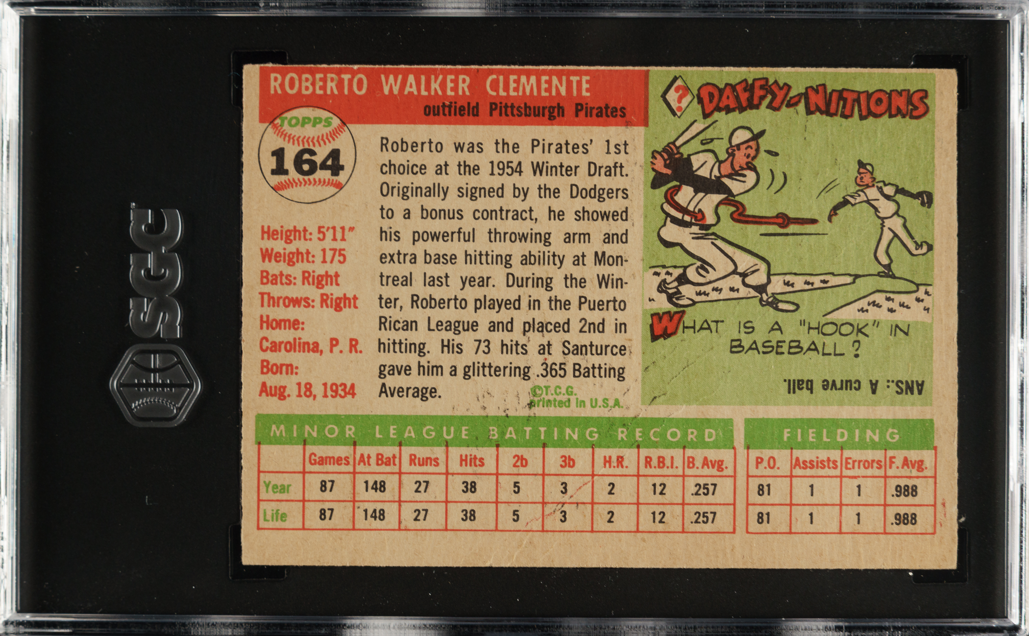 Graded FAIR 1.5 by SGC. Pittsburgh Pirates Hall of Famer Roberto Clemente.