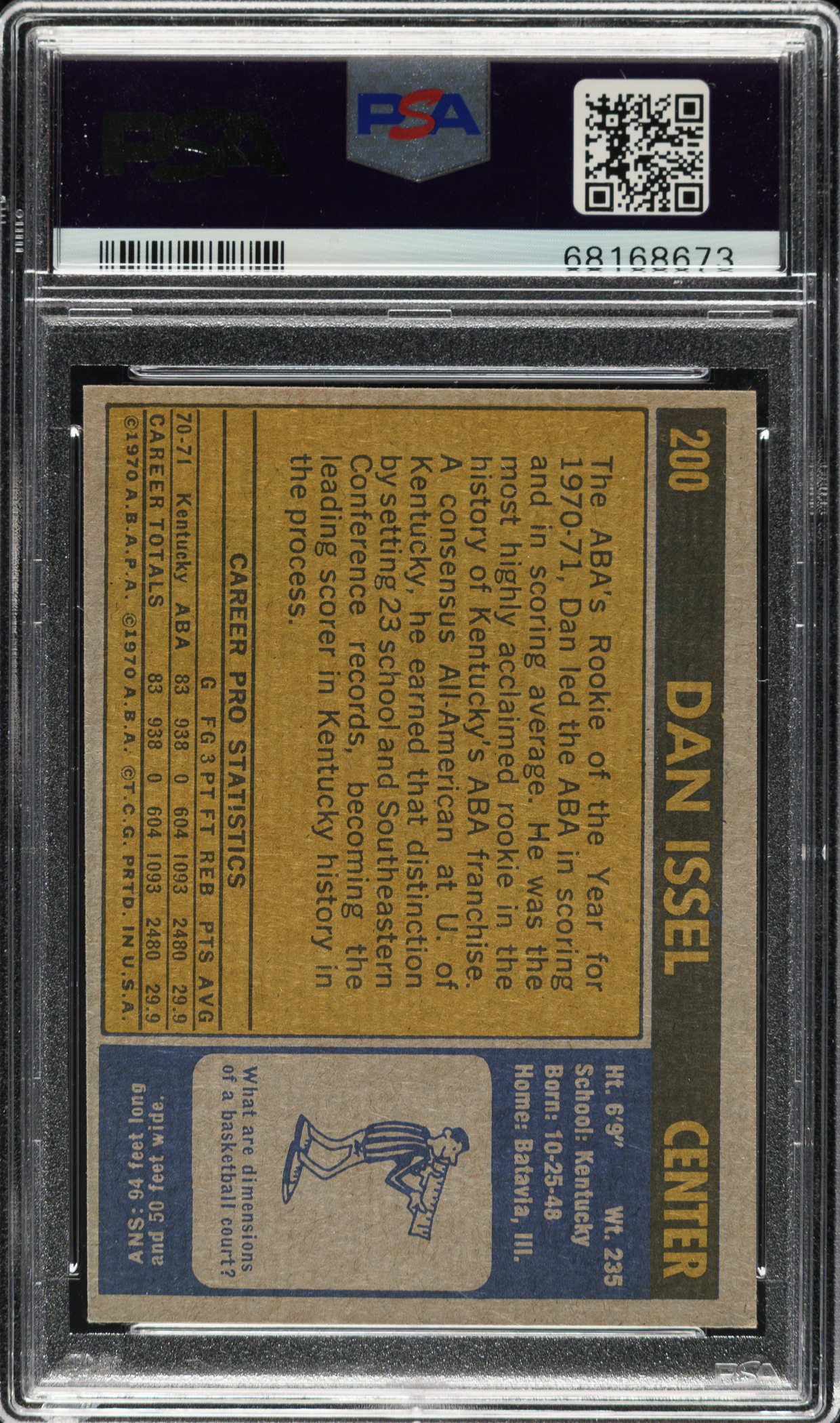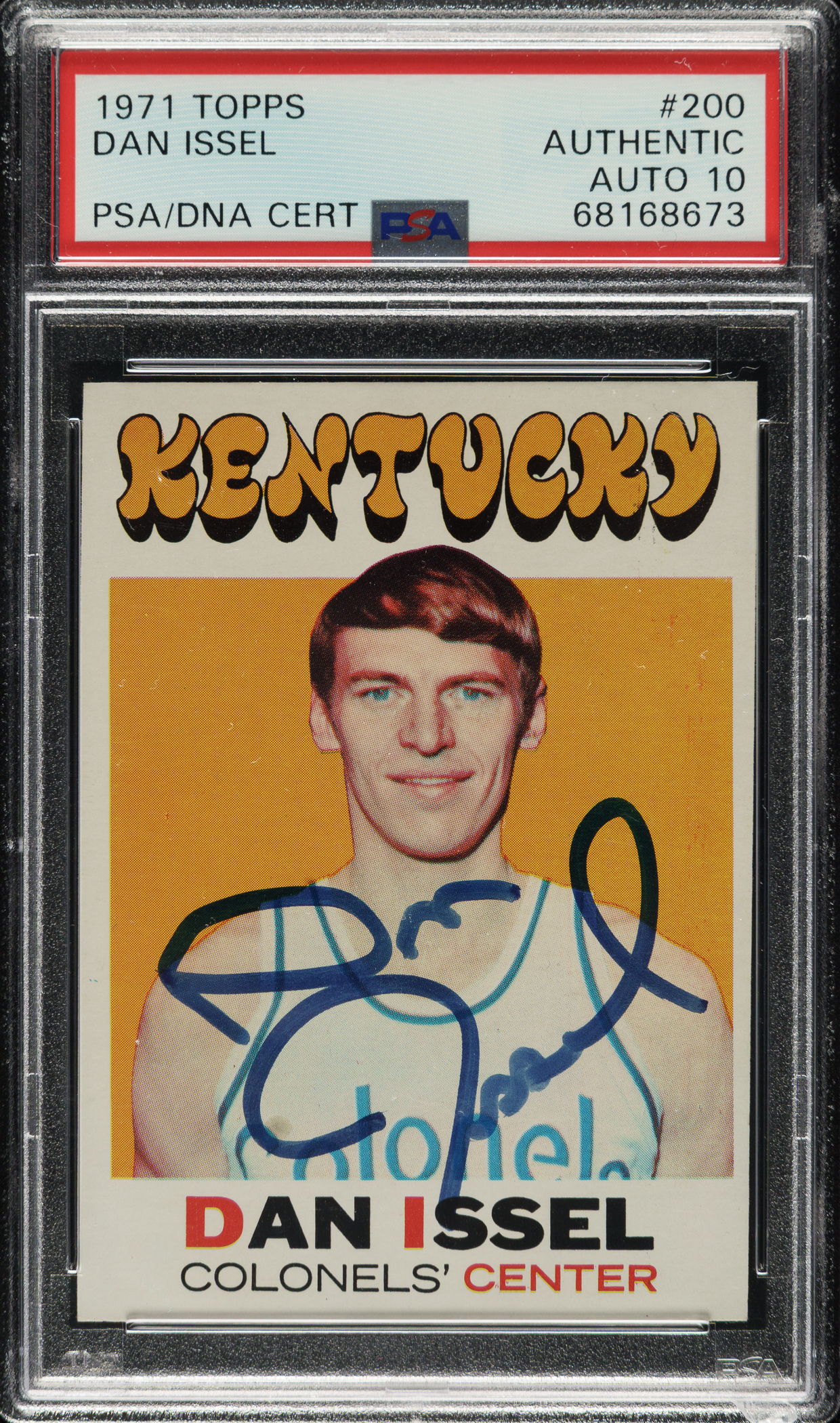 PSA/DNA has encapsulated the card, grading the signature GEM MINT 10. Kentucky Colonels basketball Hall of Famer Dan Issel.