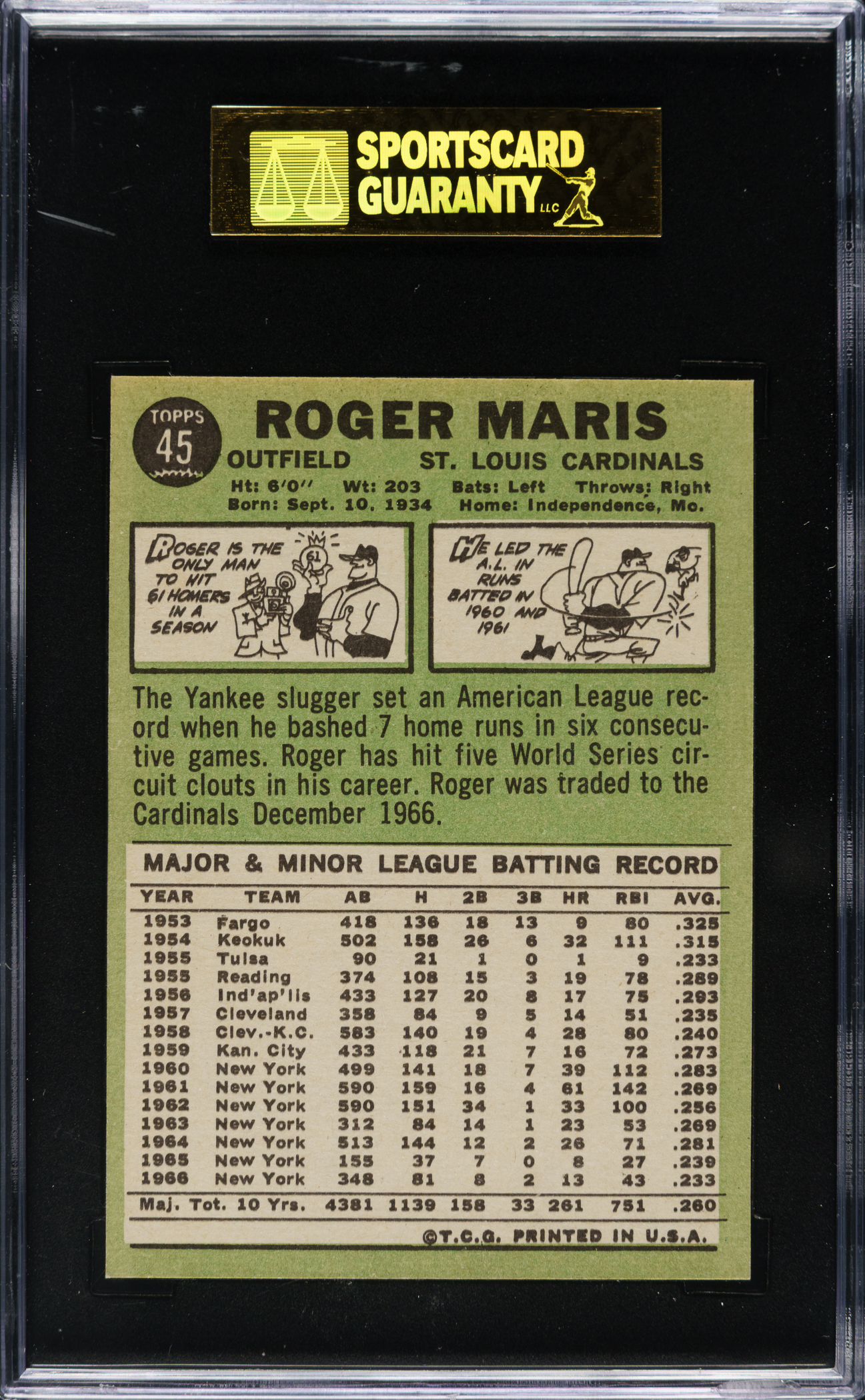 Lot # 2071: 1967 Topps #45 Roger Maris SGC NM/MT 88