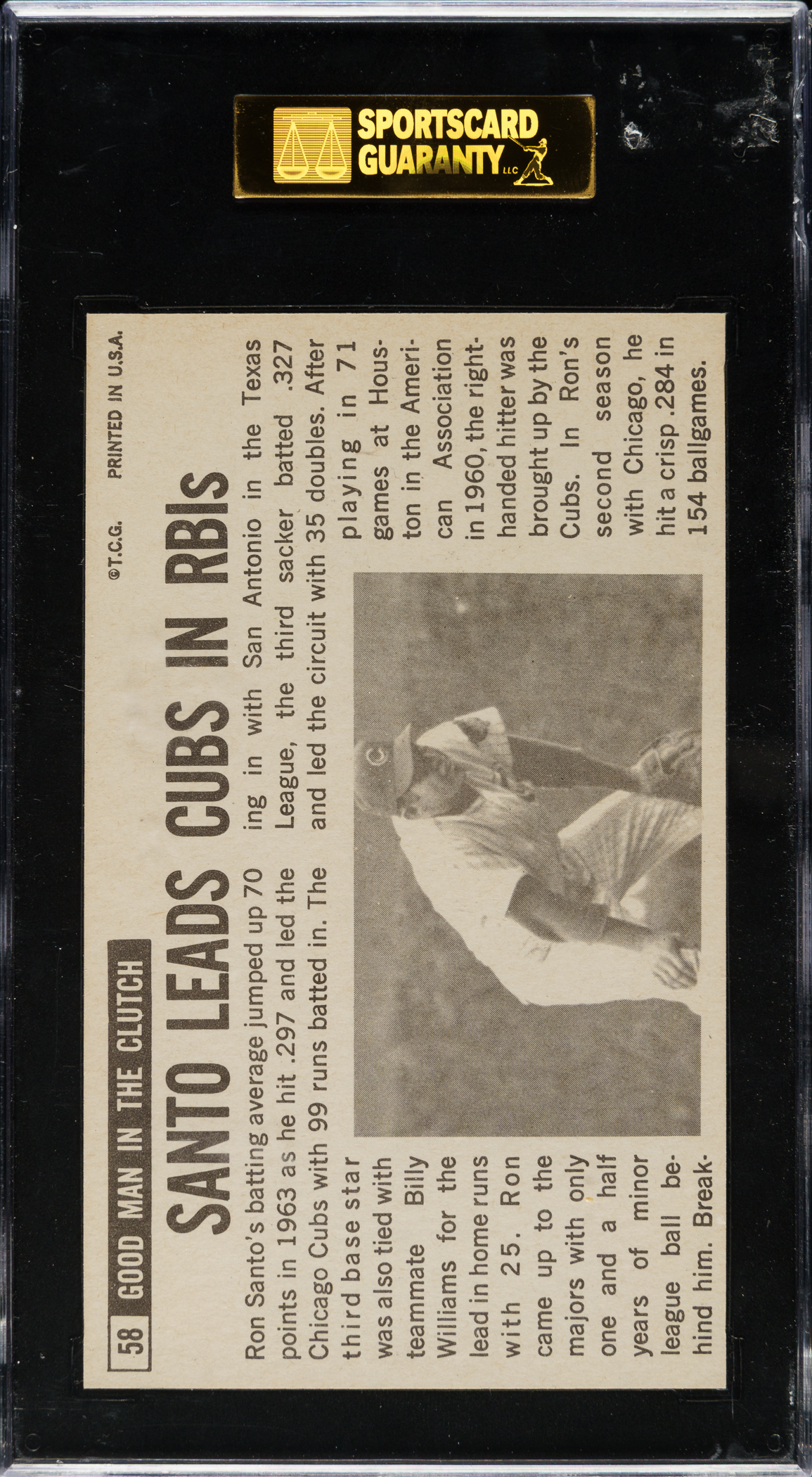 Graded MINT 96 by SGC. Chicago Cubs Hall of Famer Ron Santo.