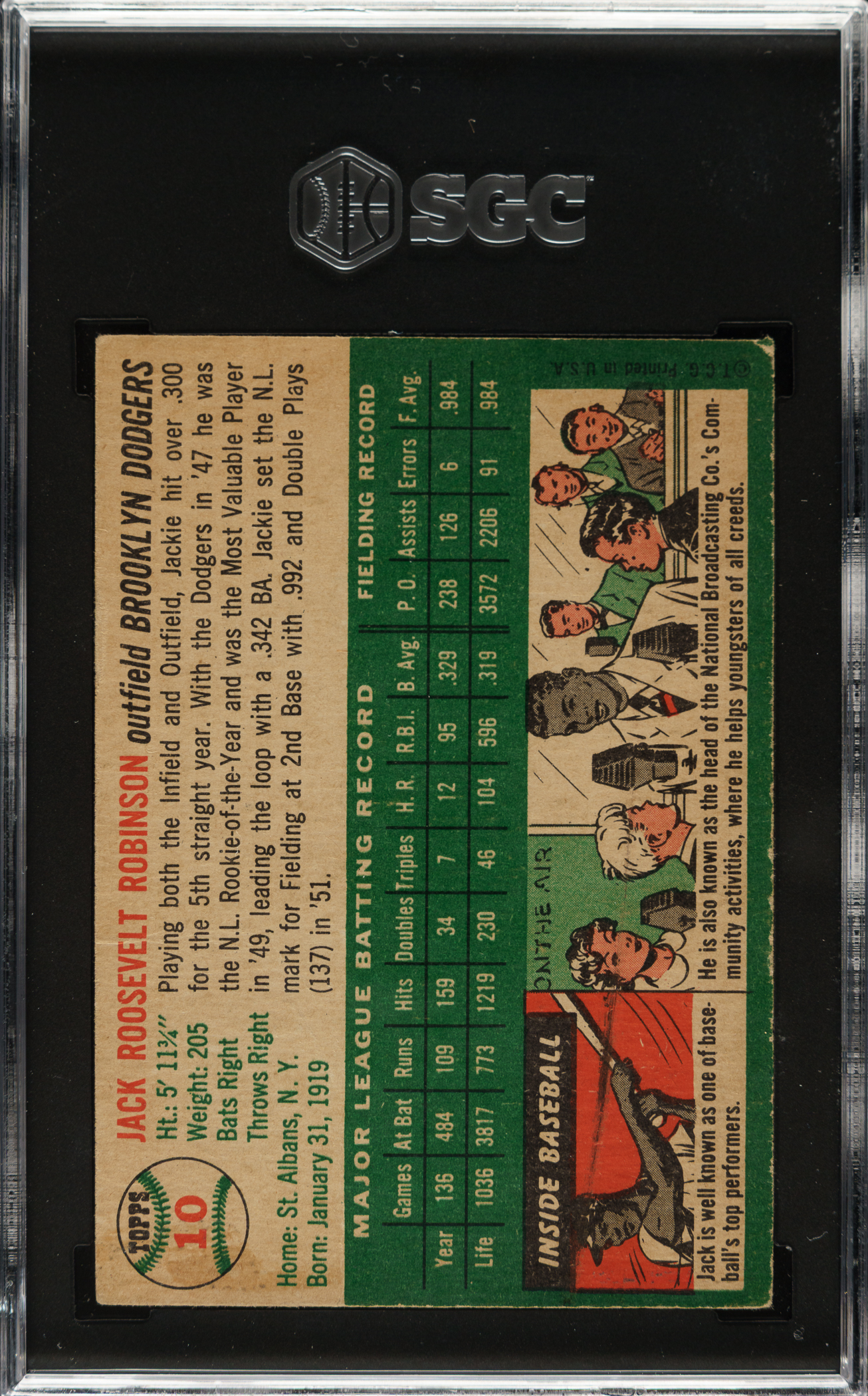 Graded GOOD+ 2.5 by SGC. Brooklyn Dodgers Hall of Famer Jackie Robinson.
