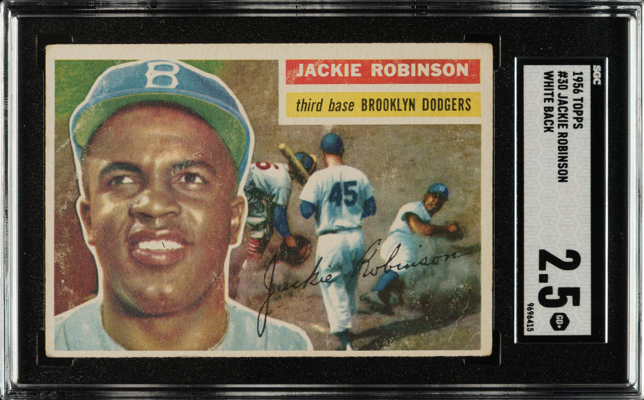 Lot # 1664: 1956 Topps #30 Jackie Robinson White Back SGC GOOD+ 2.5