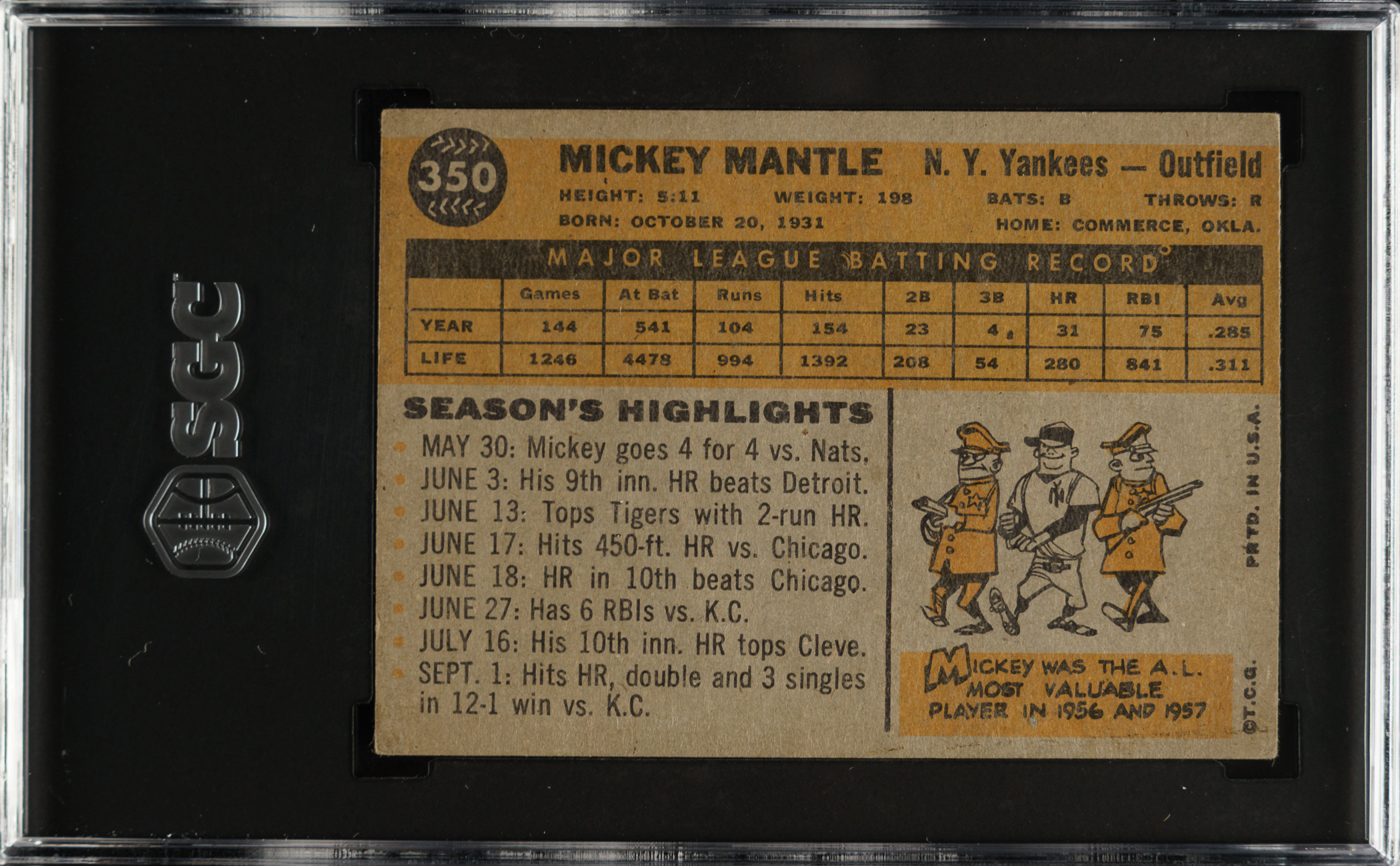 Lot # 1844: 1960 Topps #350 Mickey Mantle SGC Authentic