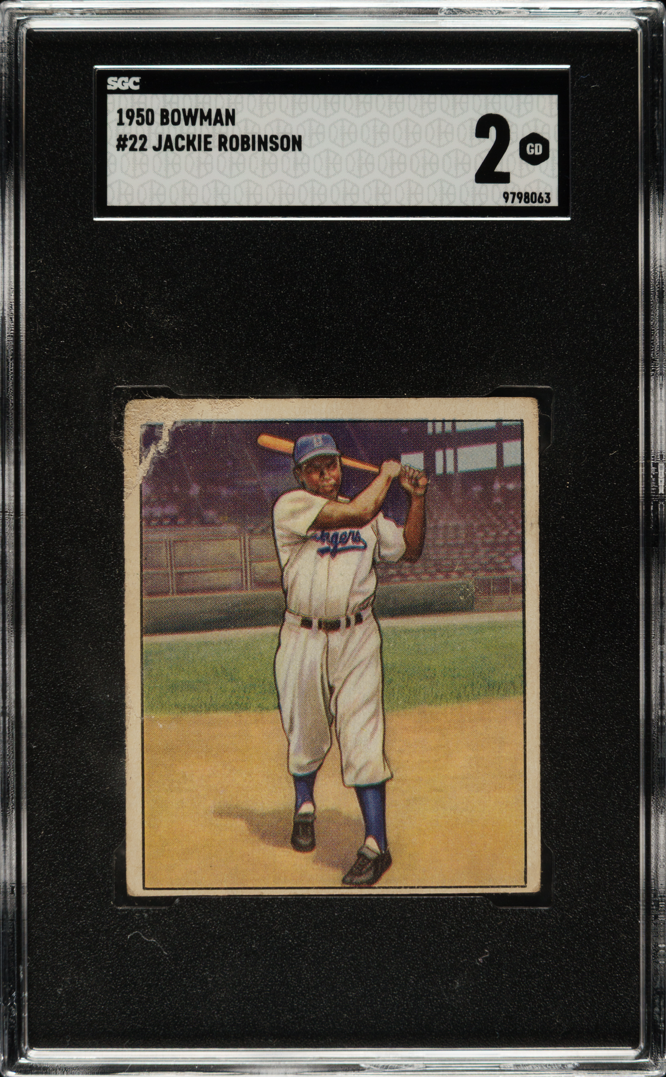 Graded GOOD 2 by SGC. Brooklyn Dodgers Hall of Famer Jackie Robinson.