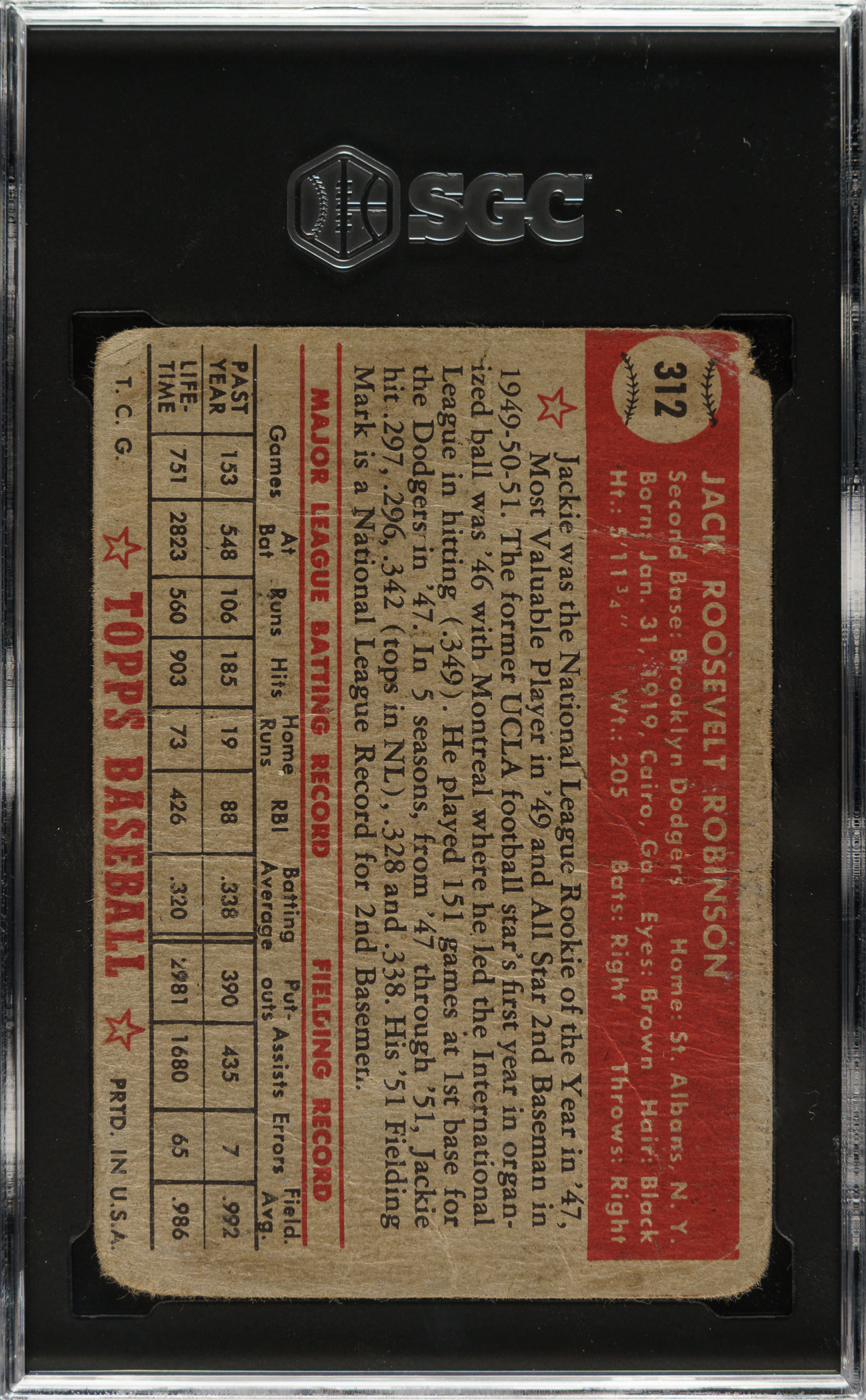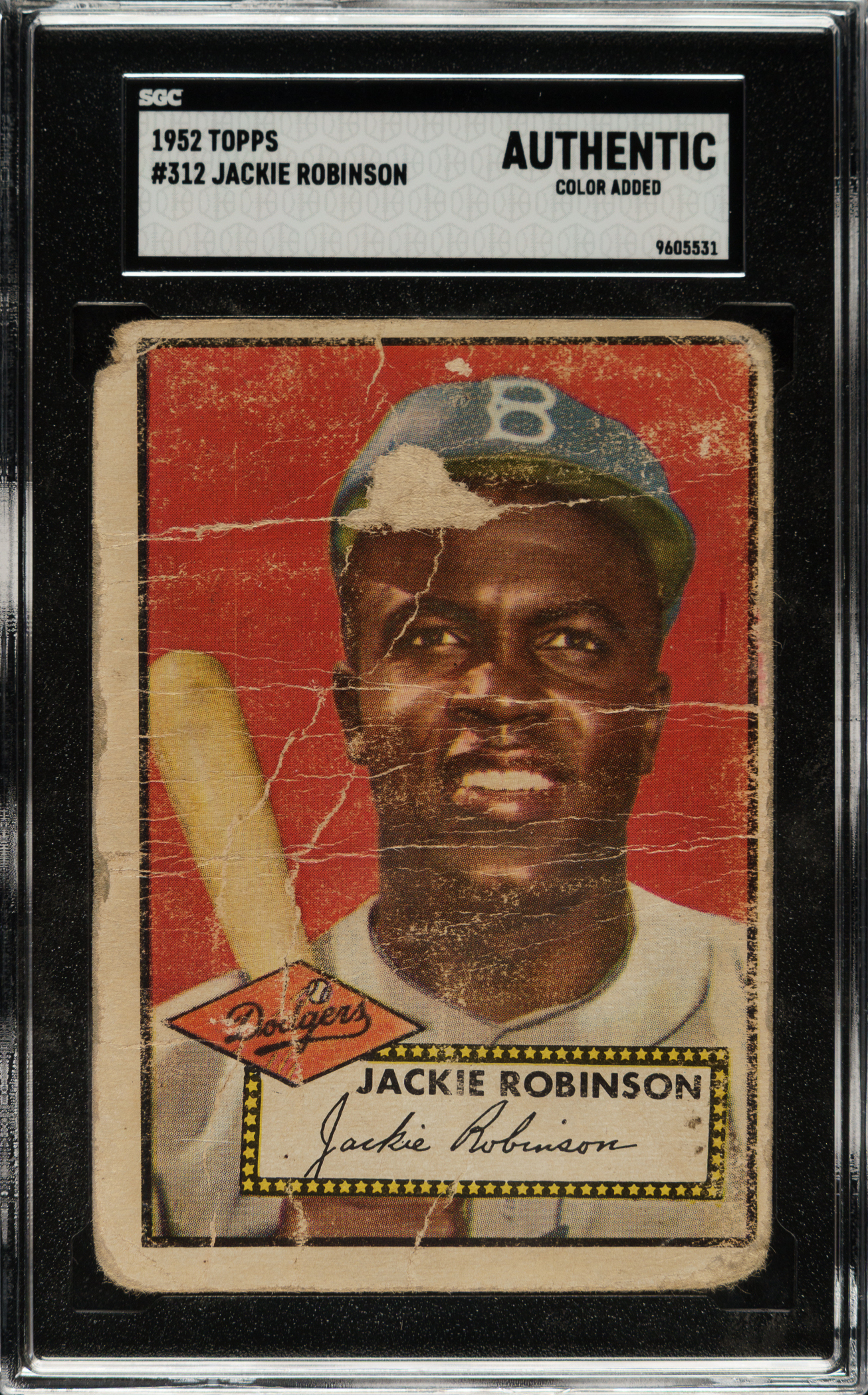 Graded Authentic by SGC. Brooklyn Dodgers Hall of Famer Jackie Robinson.