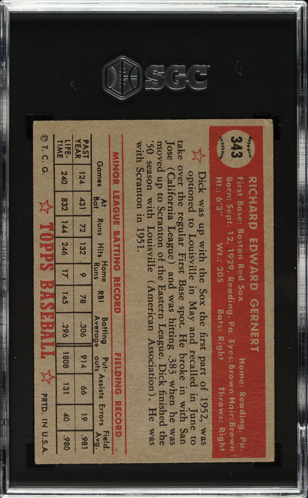 Graded VG/EX 4 by SGC. Boston Red Sox.