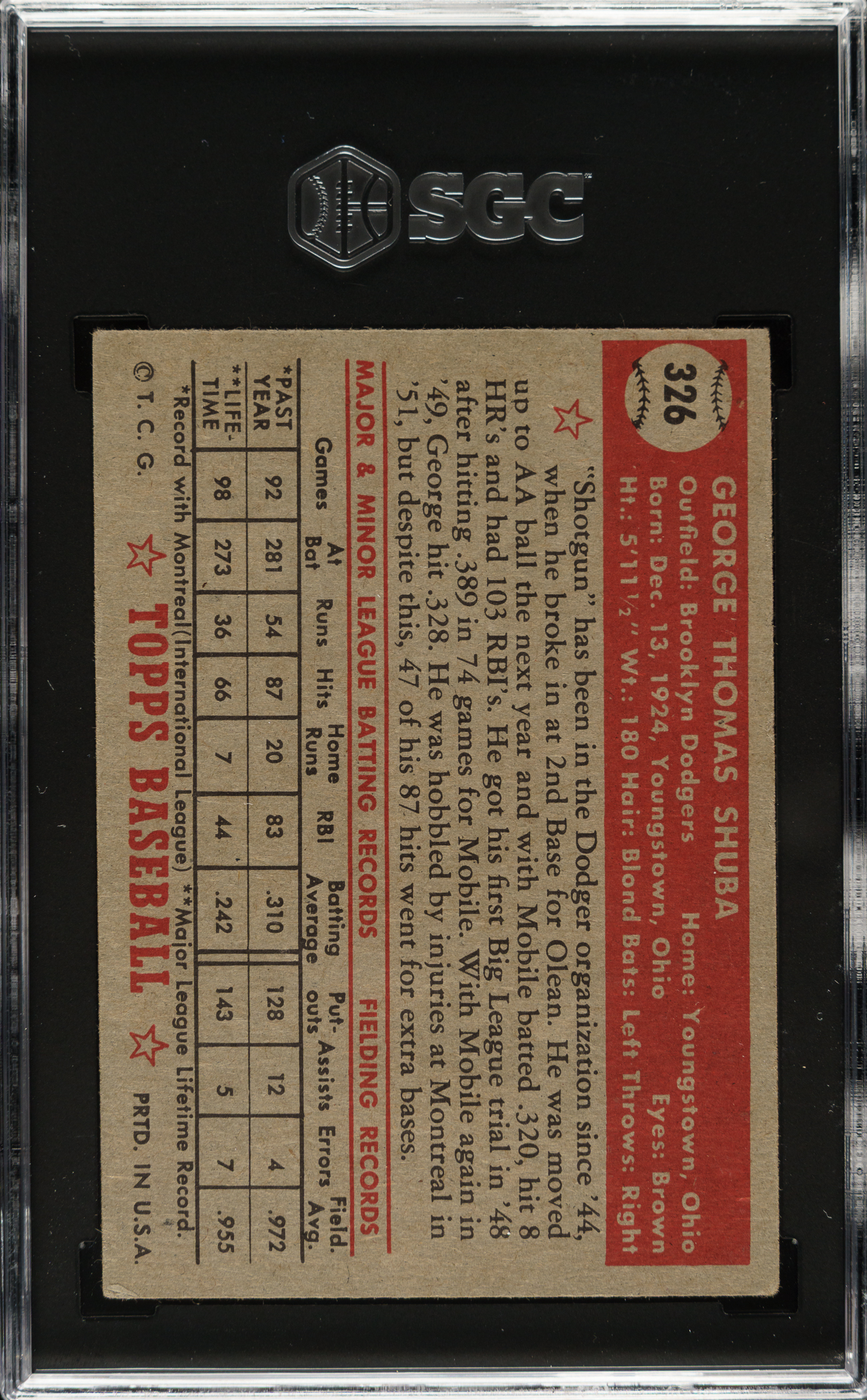 Graded VG/EX 4 by SGC. Brooklyn Dodgers.