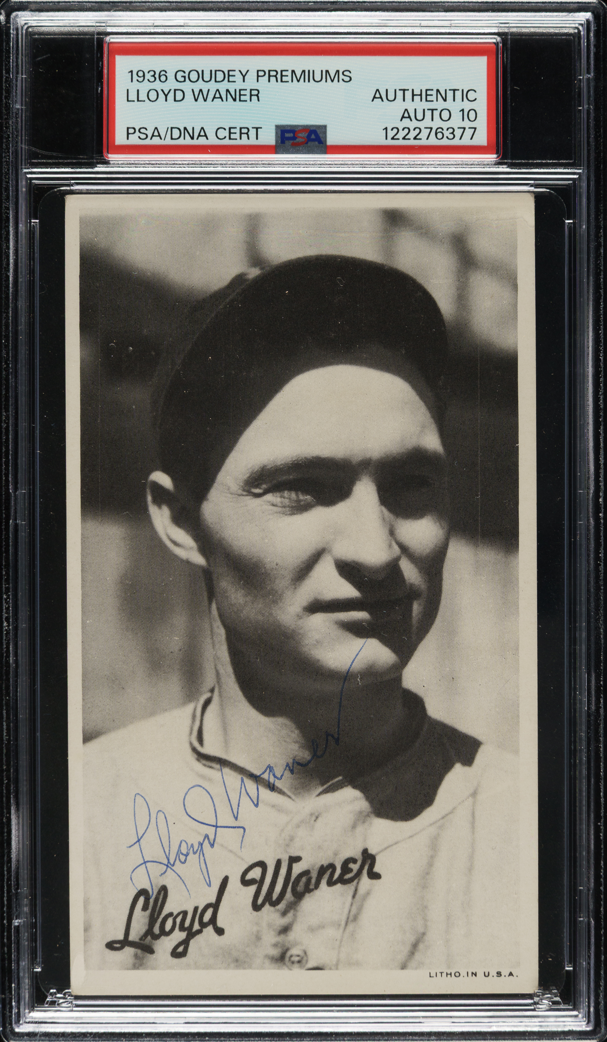 PSA/DNA has encapsulated the card, grading the signature GEM MINT 10. Pittsburgh Pirates Hall of Famer Lloyd Waner.