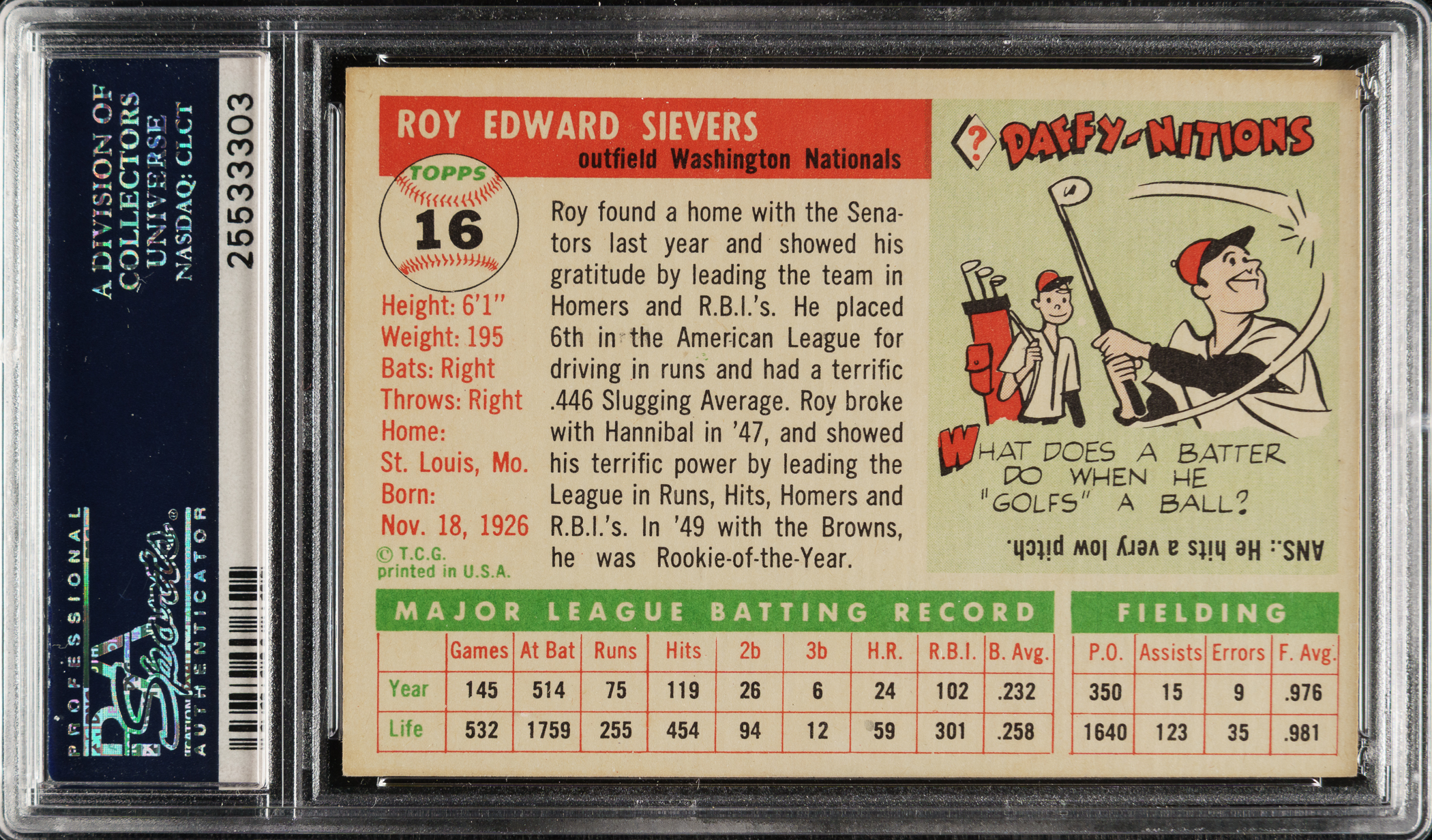 Lot # 1627: 1955 Topps #16 Roy Sievers PSA NM-MT 8