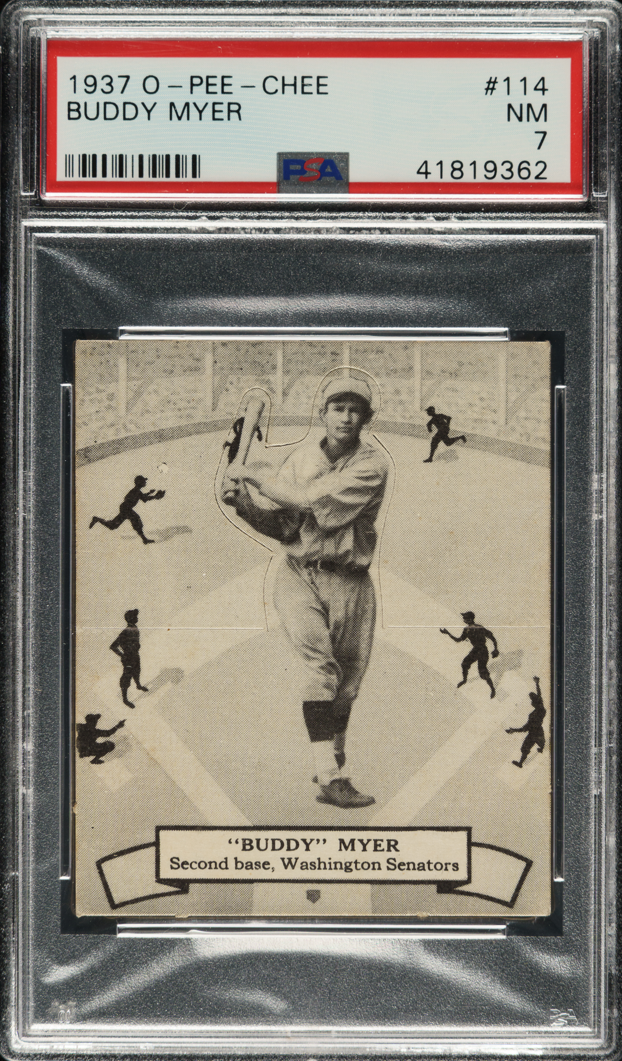Lot # 1174: 1937 V300 O-Pee-Chee #114 Buddy Myer PSA NM 7