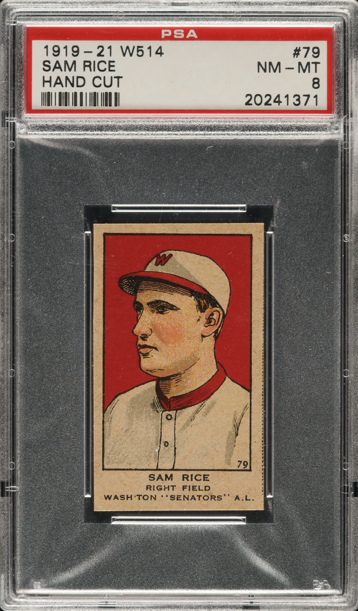 Graded NM-MT 8 by PSA. Washington Senators Hall of Famer Sam Rice.