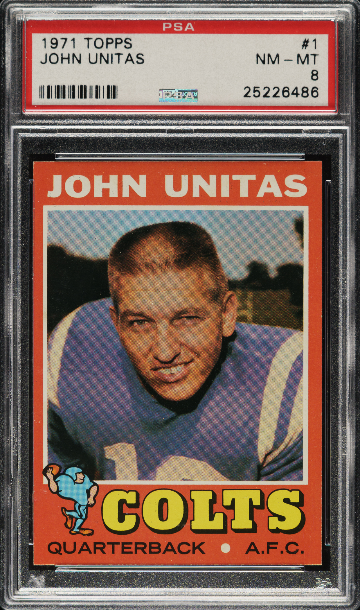 Graded NM-MT 8 by PSA. Baltimore Colts football Hall of Famer Johnny Unitas.