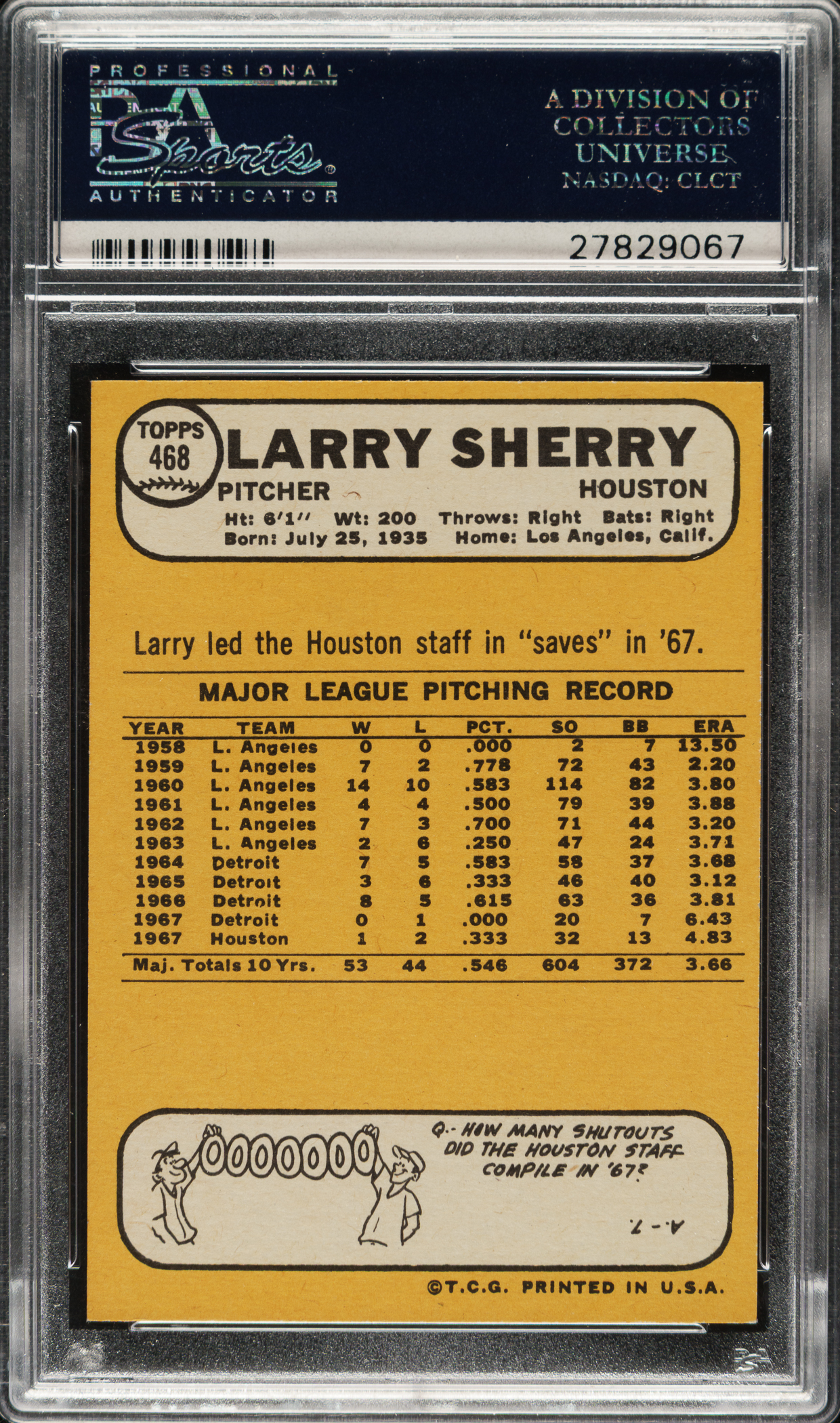 Graded GEM MINT 10 by PSA. Houston Astros.