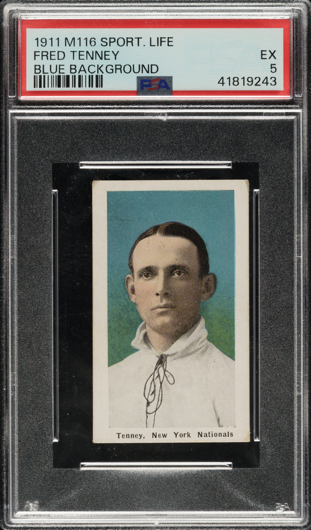 Lot # 733: 1910-1911 M116 Sporting Life Fred Tenney Blue Background PSA EX 5