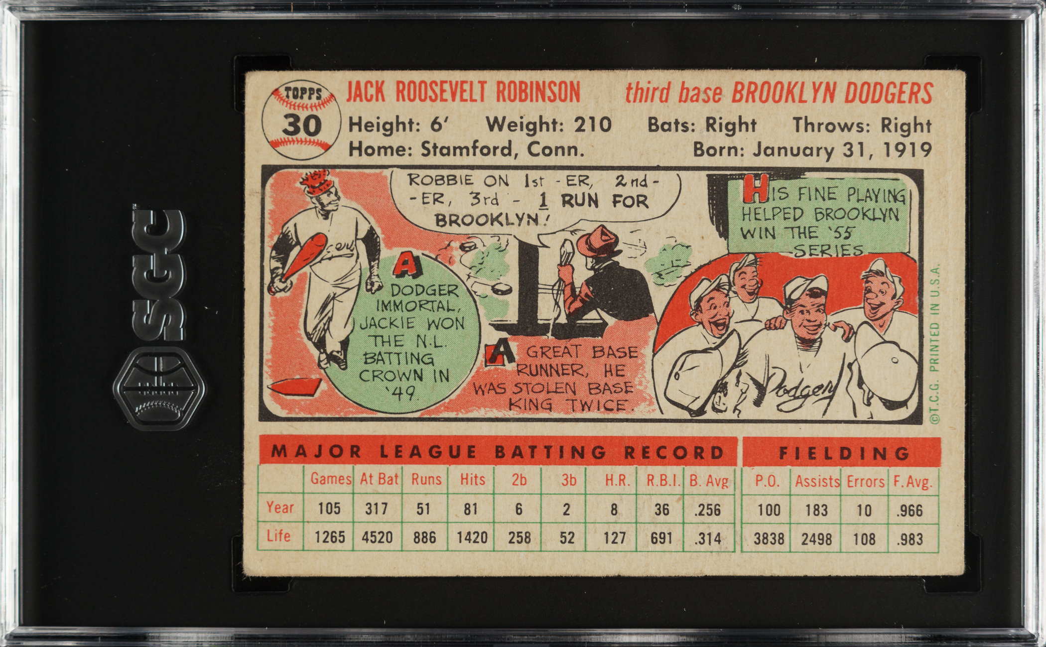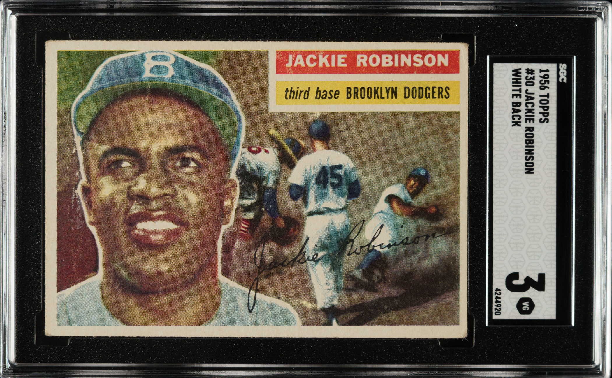 Graded VG 3 by SGC. Brooklyn Dodgers Hall of Famer Jackie Robinson.