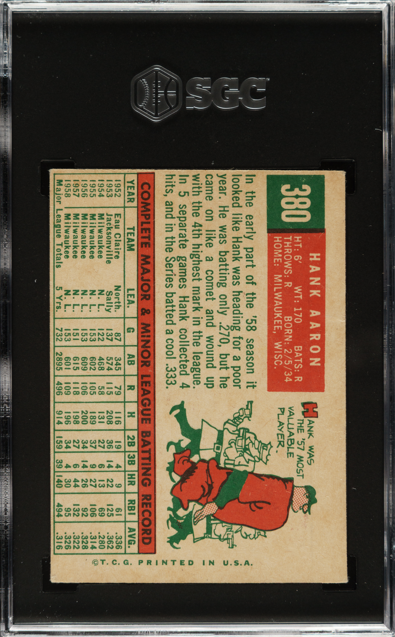 Lot # 1802: 1959 Topps #380 Hank Aaron SGC VG 3