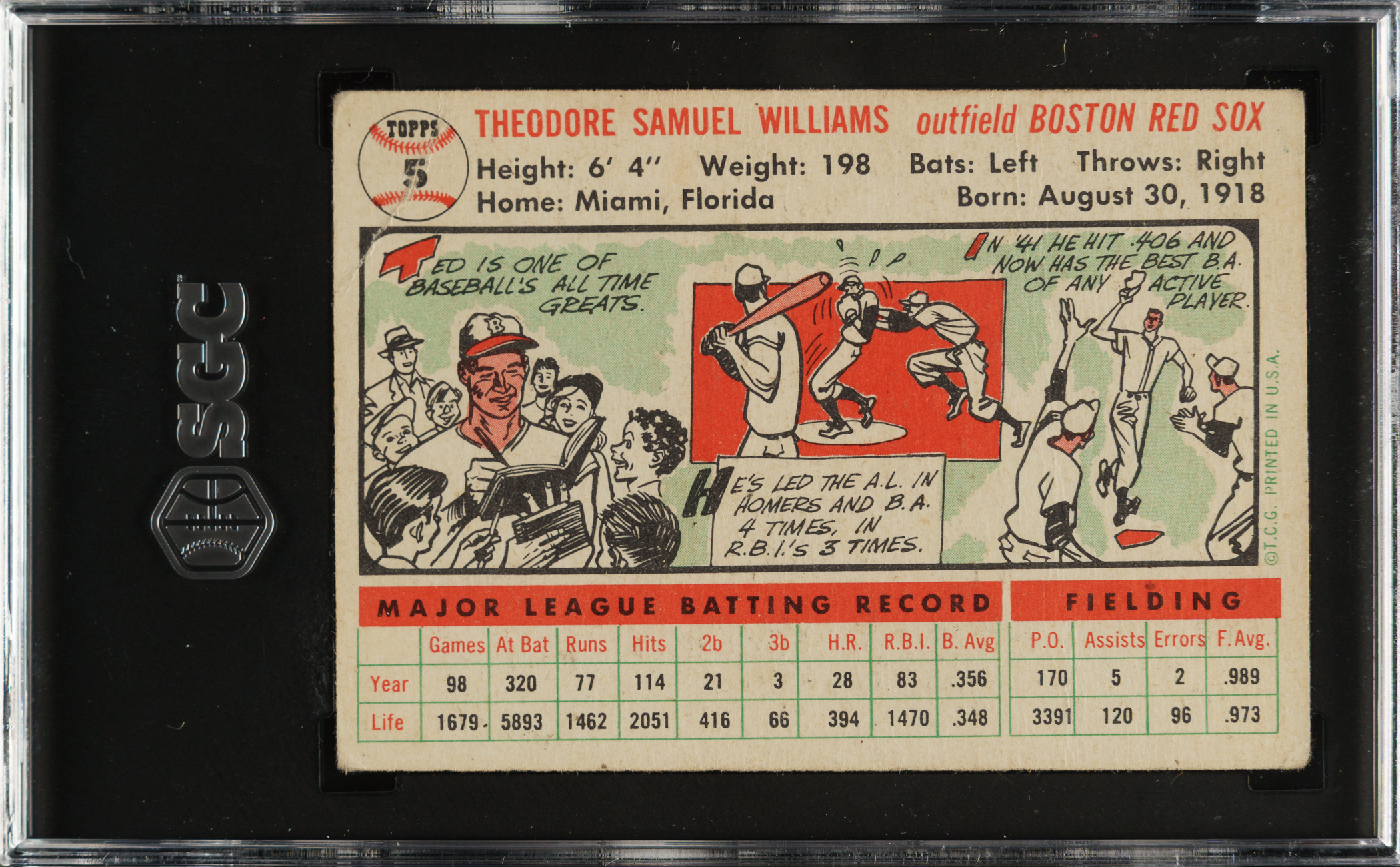 Lot # 1676: 1956 Topps #5 Ted Williams White Back SGC FAIR 1.5