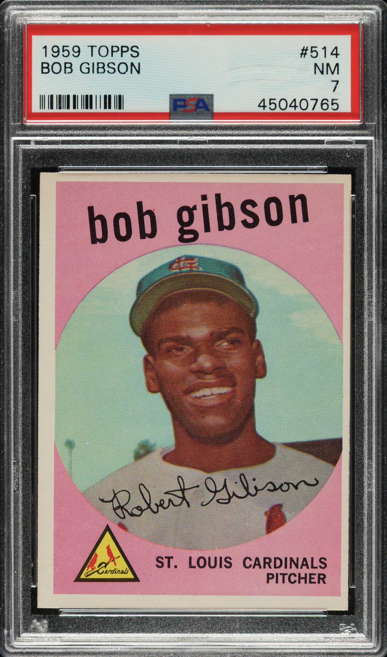 Graded NM 7 by PSA. St. Louis Cardinals Hall of Famer Bob Gibson.