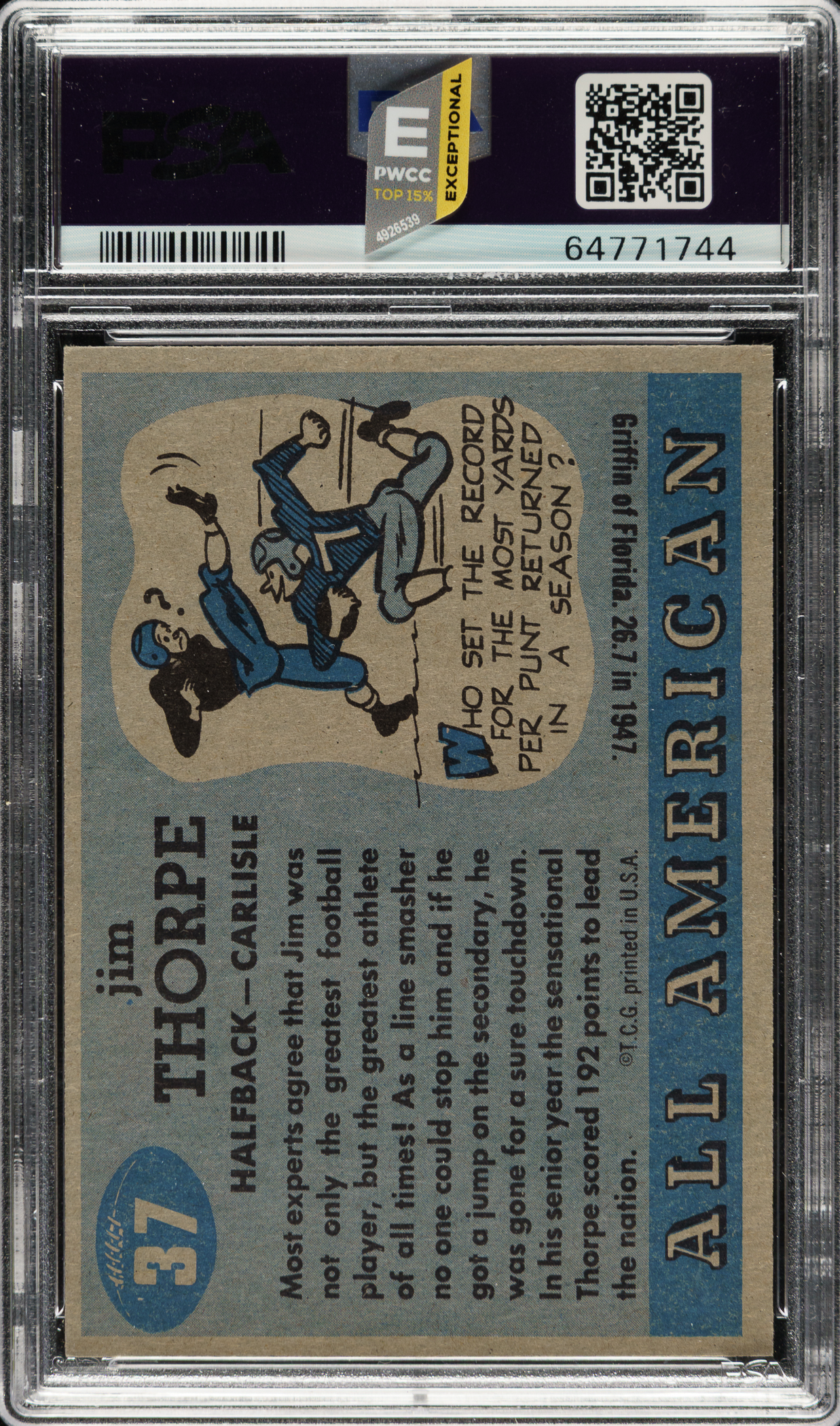 Graded NM 7 by PSA. Football Hall of Famer Jim Thorpe.