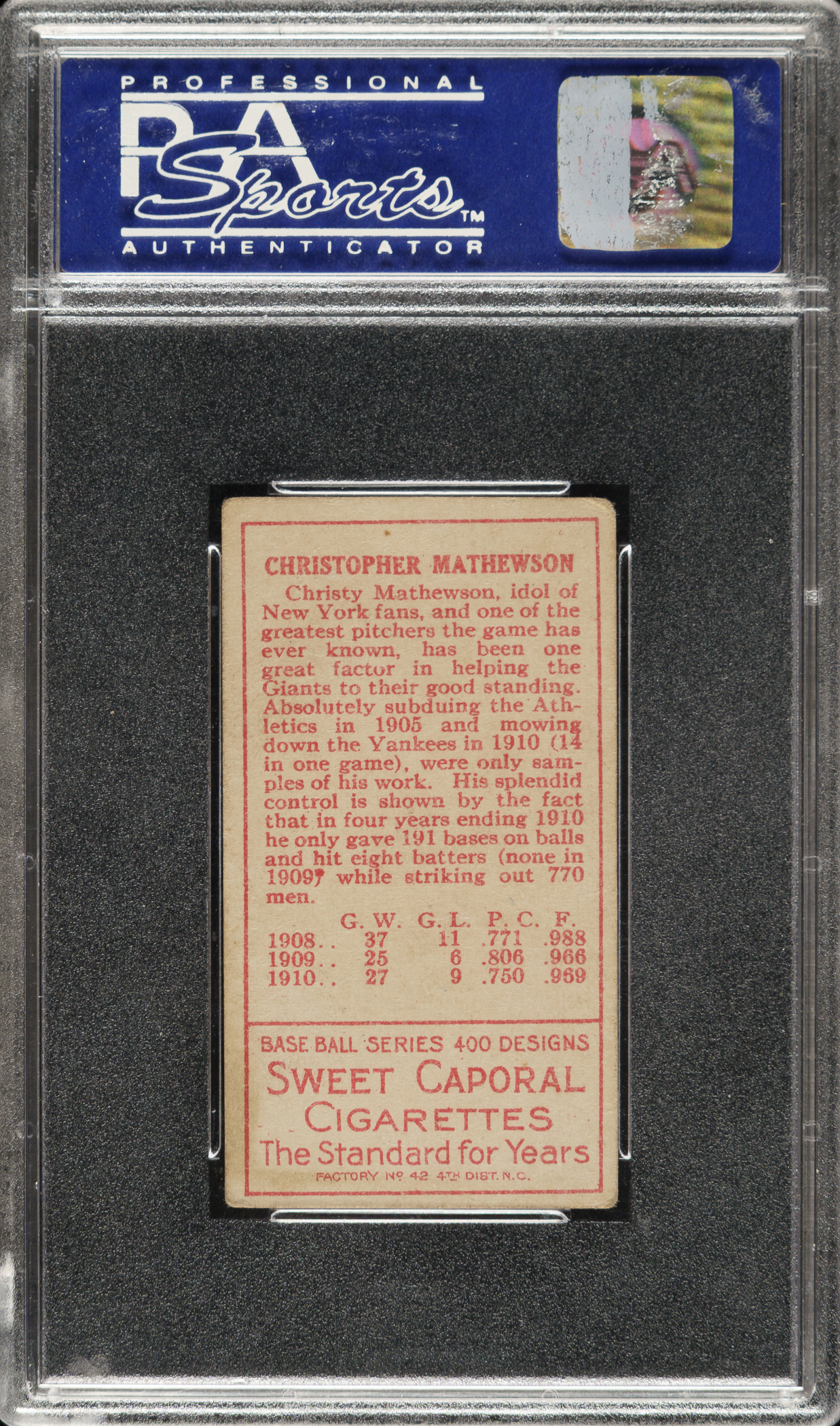 Graded VG-EX 4 by PSA. New York Giants Hall of Famer Christy Mathewson.