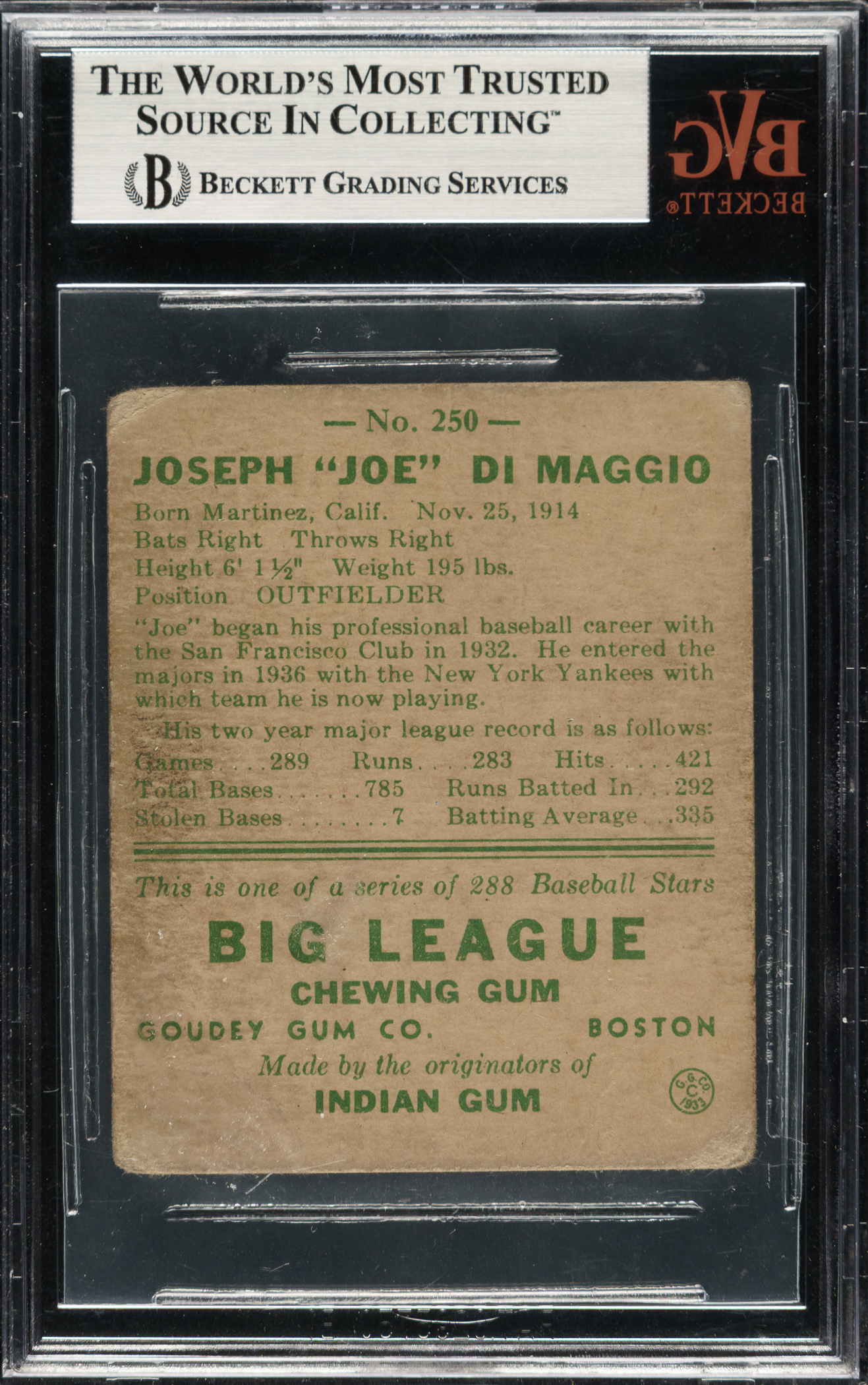 Graded FAIR 1.5 by BVG. New York Yankees Hall of Famer Joe DiMaggio.