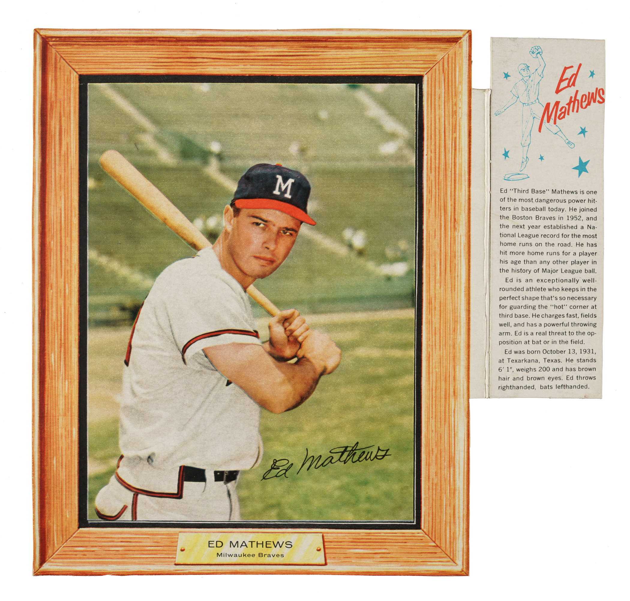 Milwaukee Braves Hall of Famer Ed Mathews. The following grade is without respect to the neatness of the cut. Condition is Vg with biography attached.