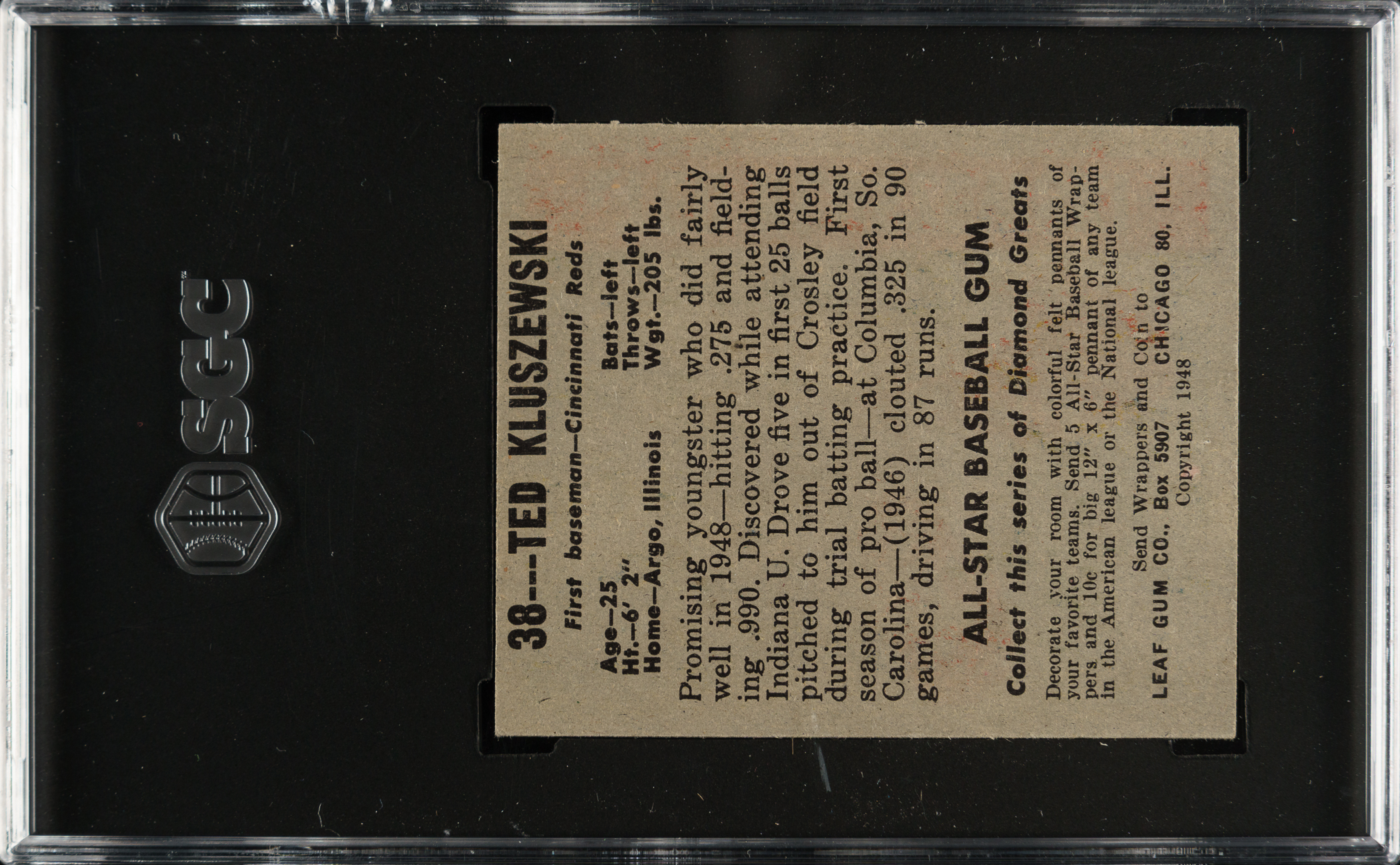 Graded EX 5 by SGC. Cincinnati Reds Hall of Famer Ted Kluszewski.