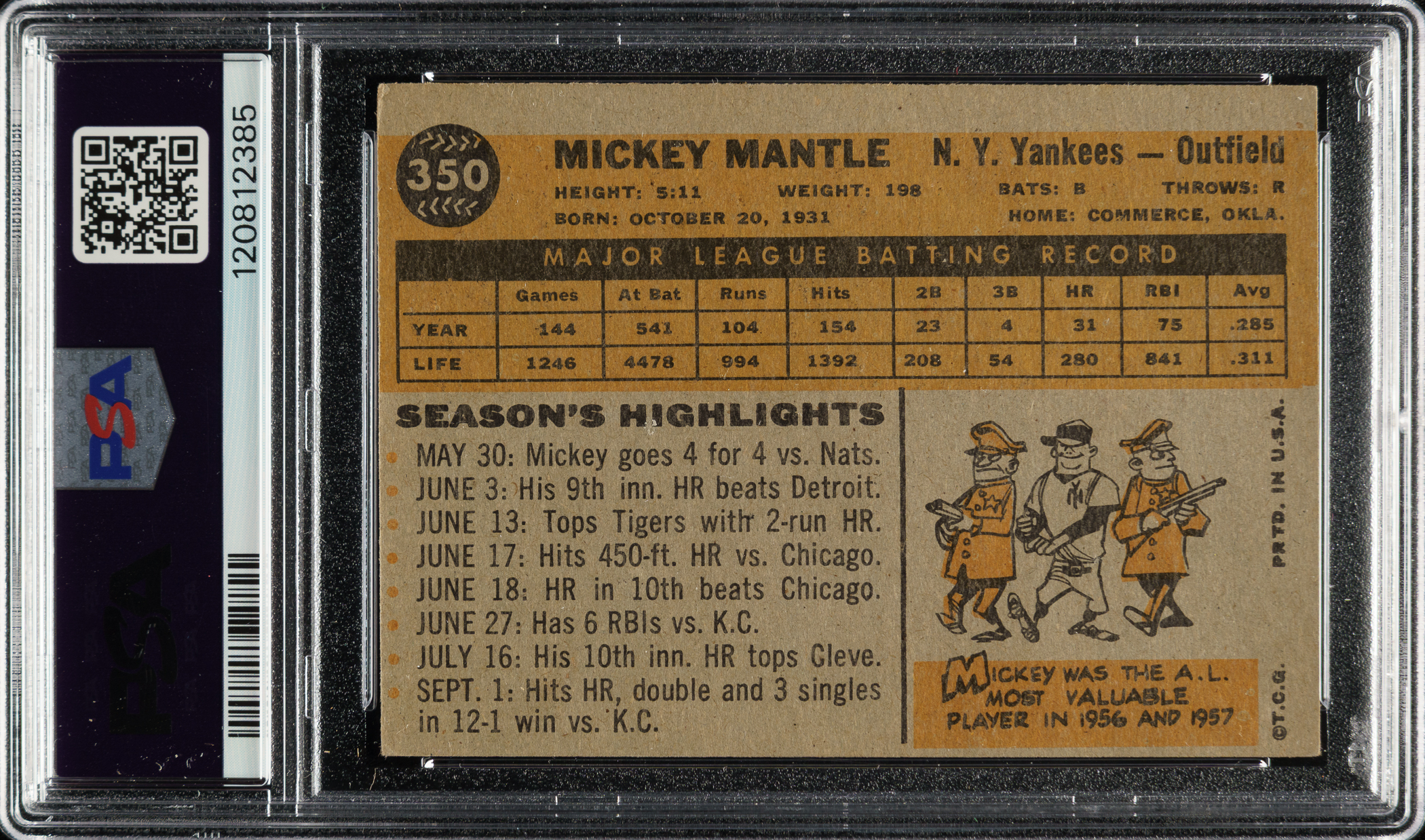 Graded VG-EX 4 (MC) by PSA. New York Yankees Hall of Famer Mickey Mantle.