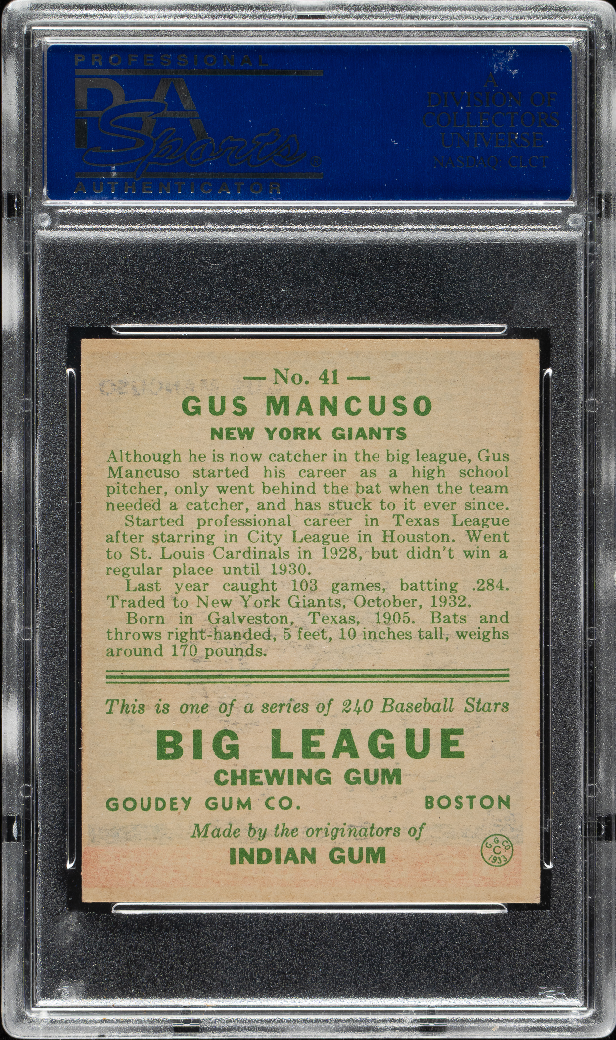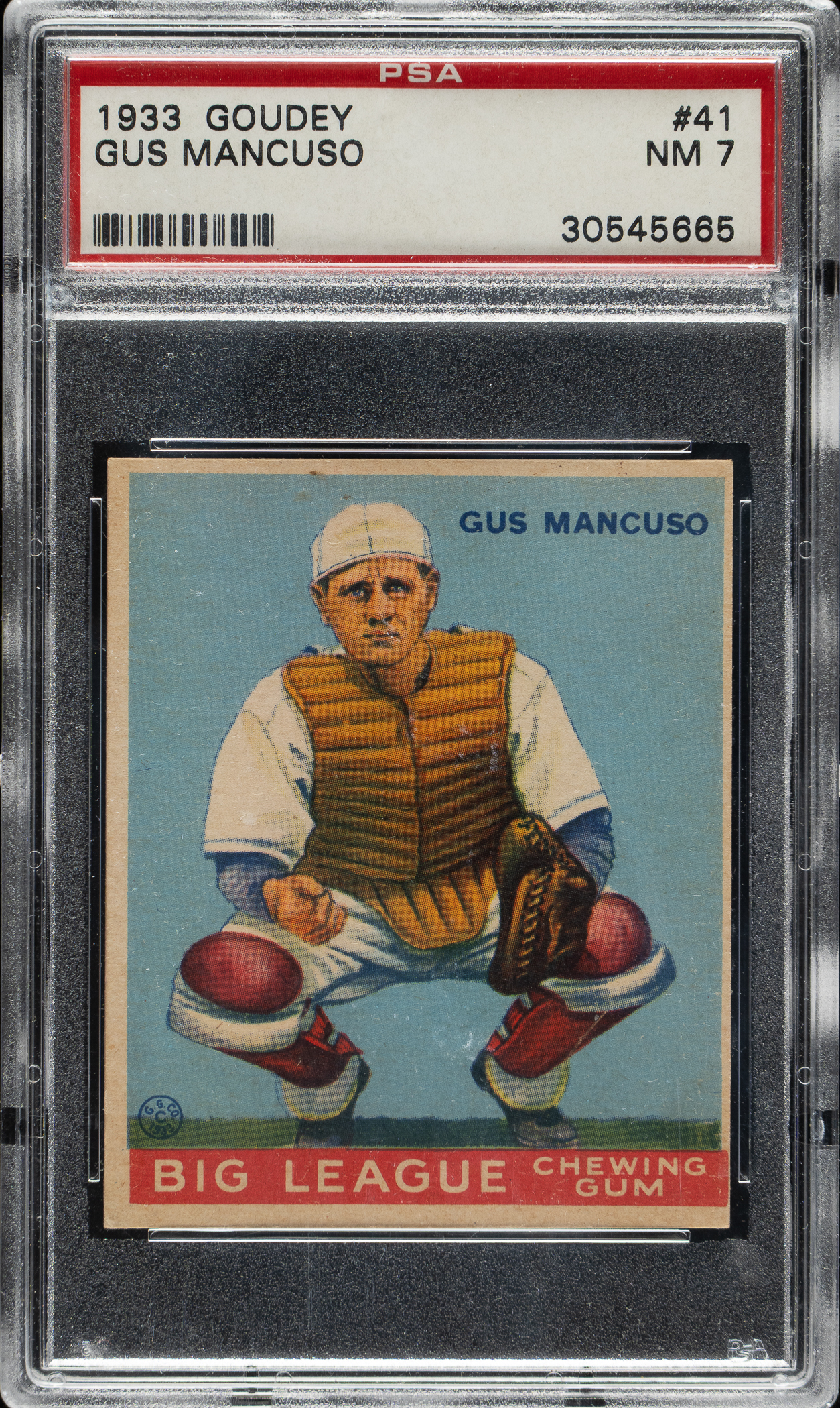 Lot # 1087: 1933 R319 Goudey #41 Gus Mancuso PSA NM 7