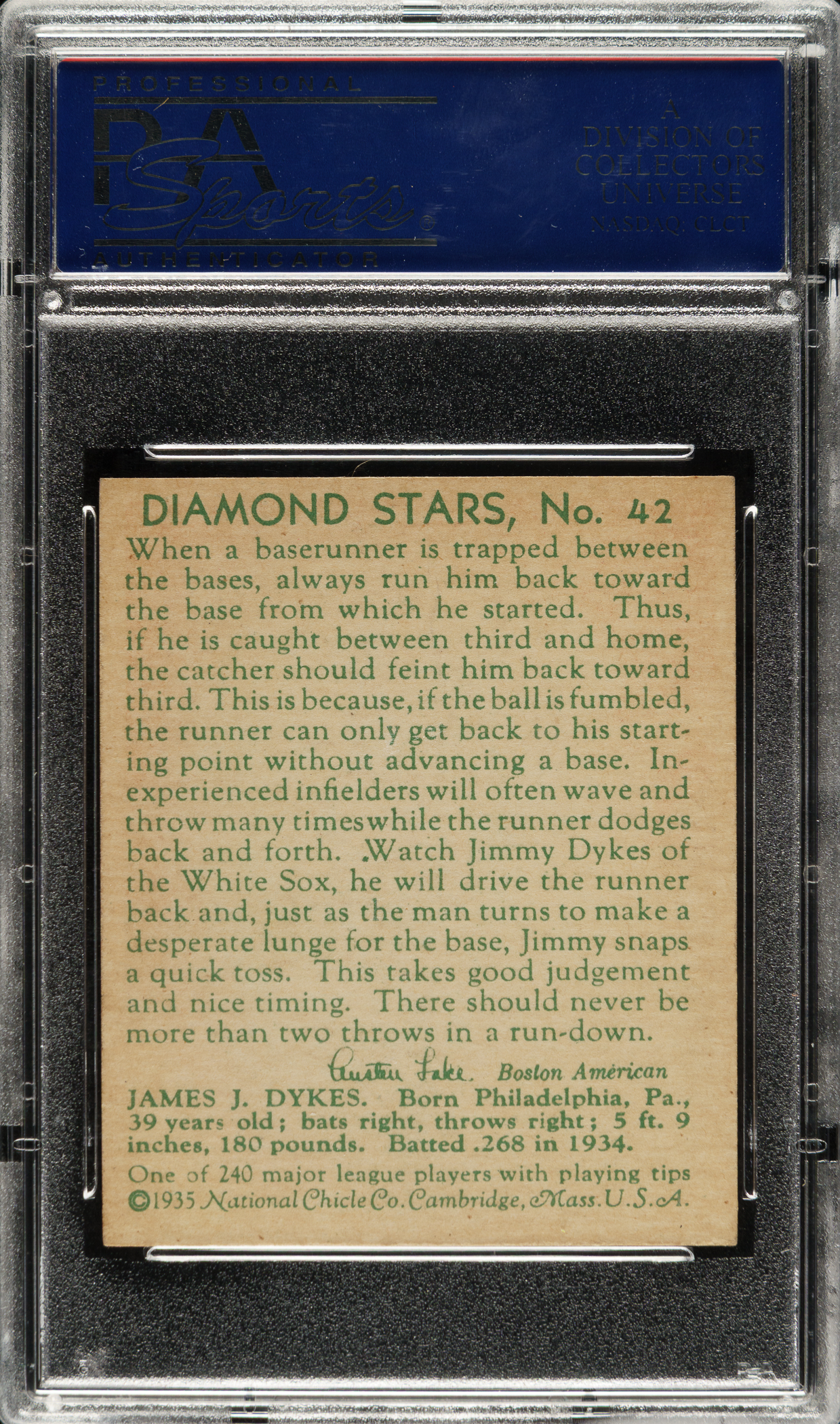Lot # 1152: 1934-1936 R327 Diamond Stars #42 Jimmy Dykes (1935 Green Back) PSA EX 5