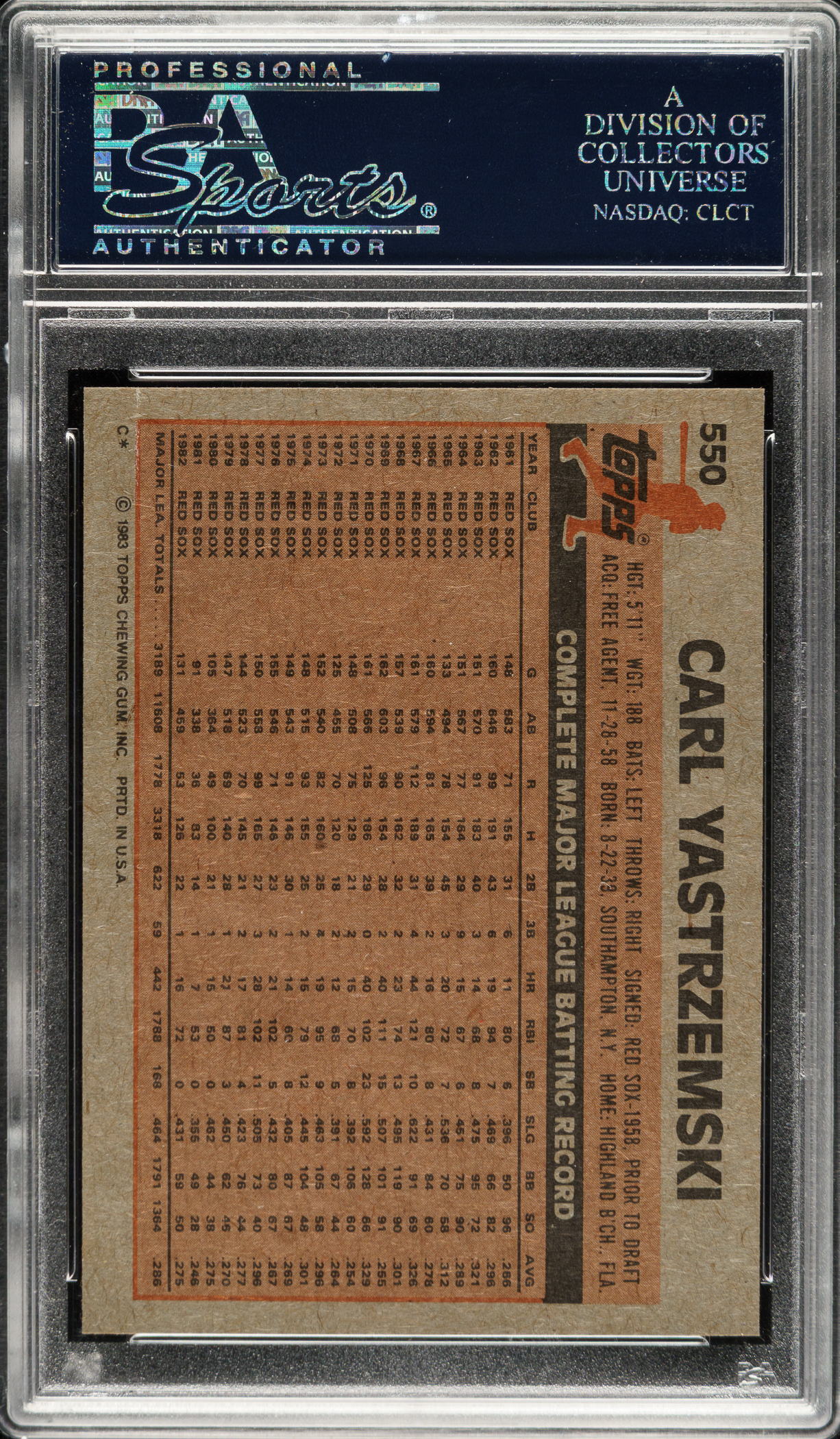 Graded GEM MINT 10 by PSA. Boston Red Sox Hall of Famer Carl Yastrzemski.