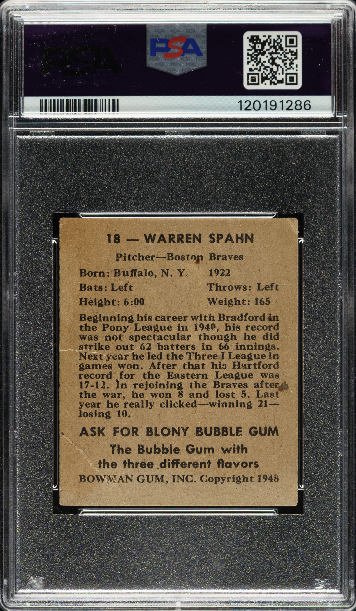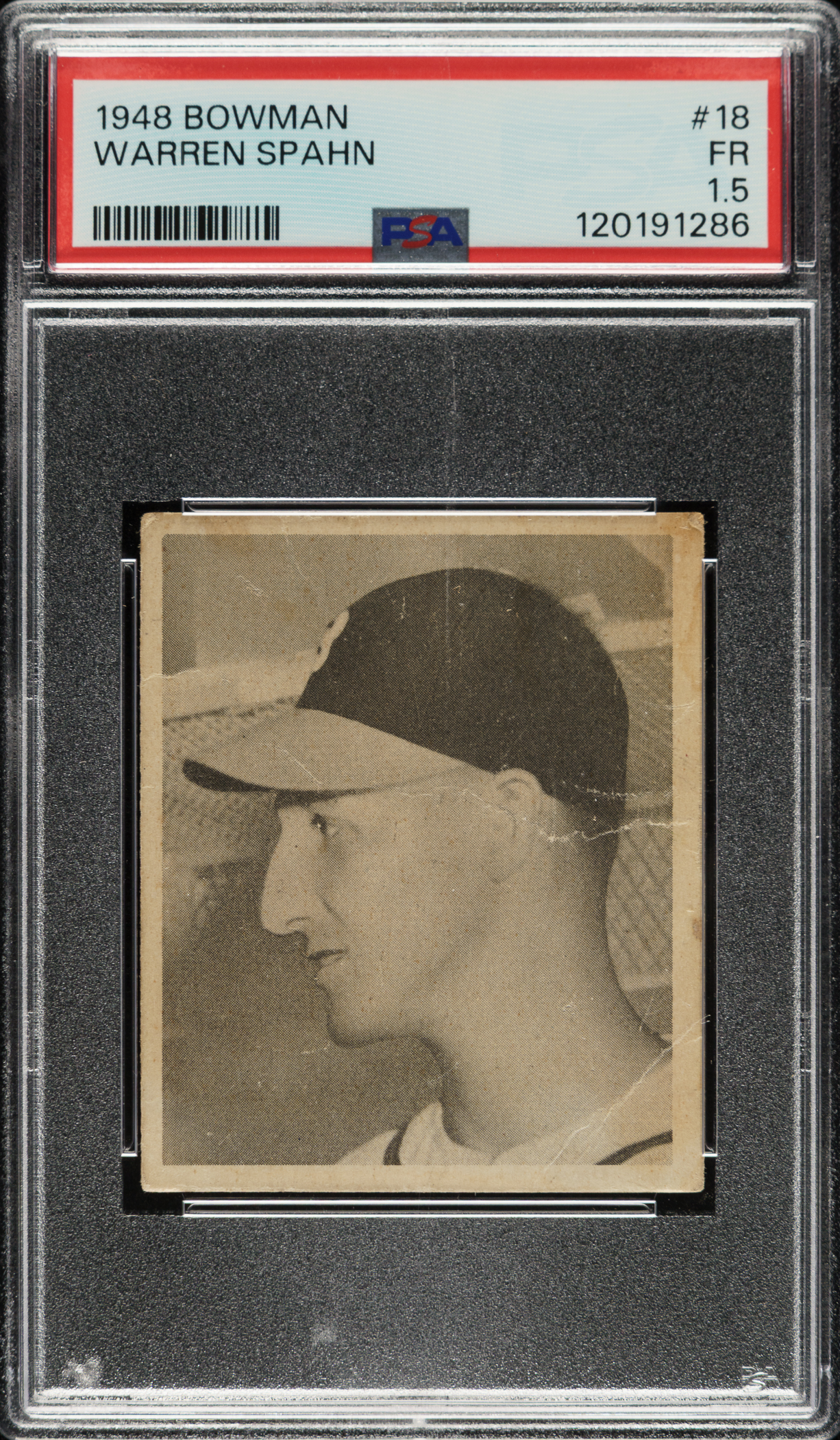 Graded FAIR 1.5 by PSA. Boston Braves Hall of Famer Warren Spahn.