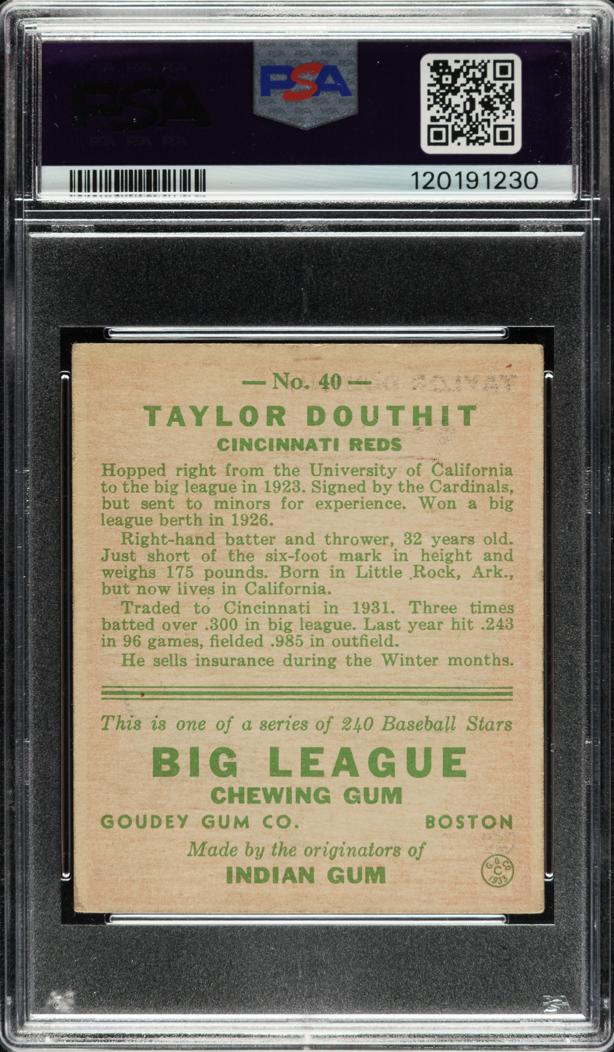 Lot # 1086: 1933 R319 Goudey #40 Taylor Douthit PSA VG-EX 4