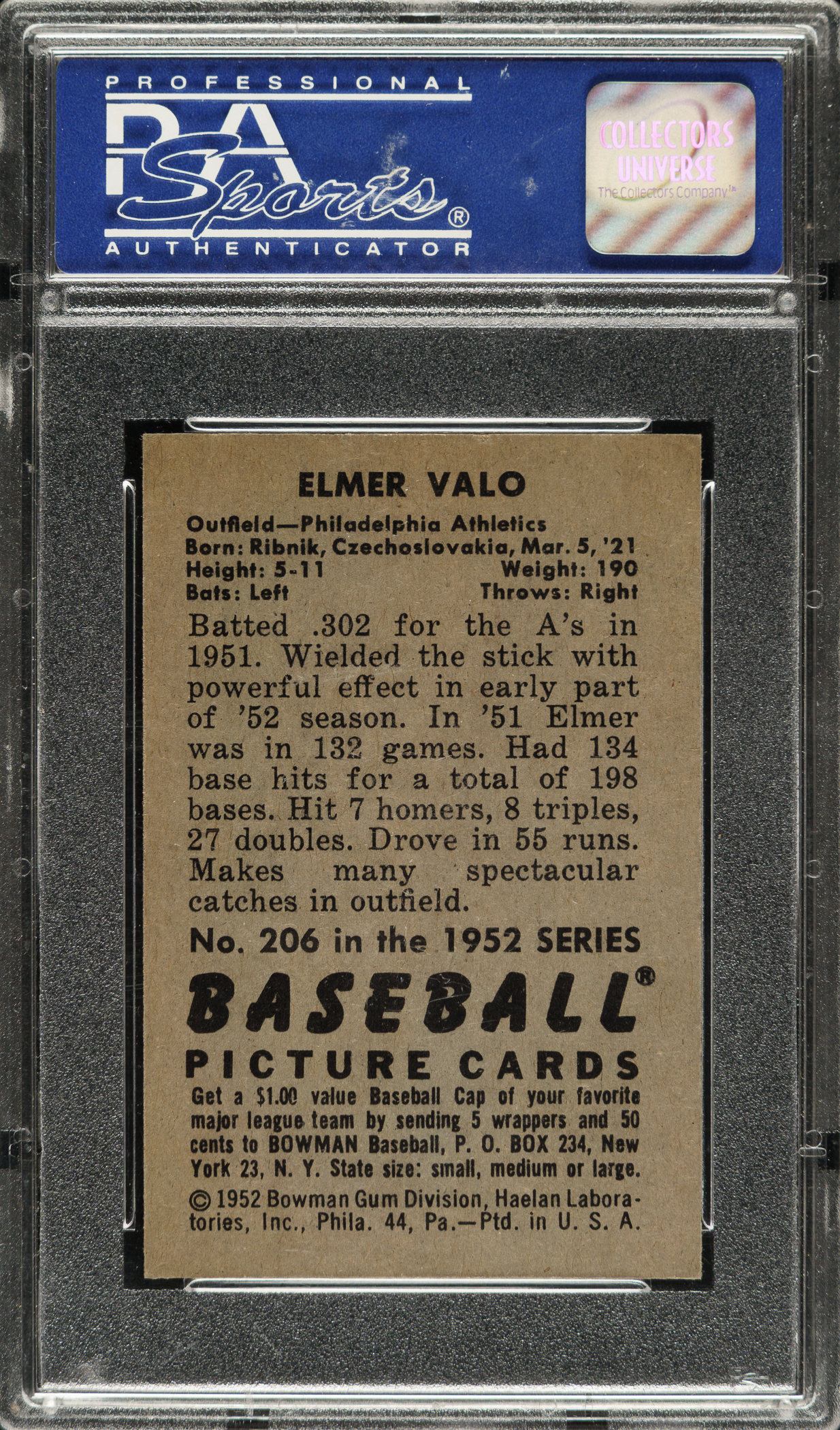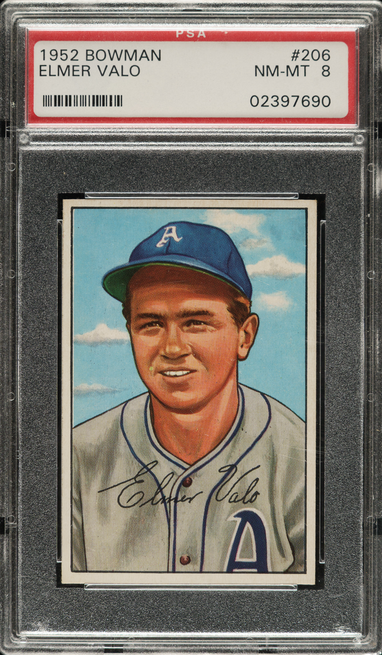 Lot # 1420: 1952 Bowman #206 Elmer Valo PSA NM-MT 8