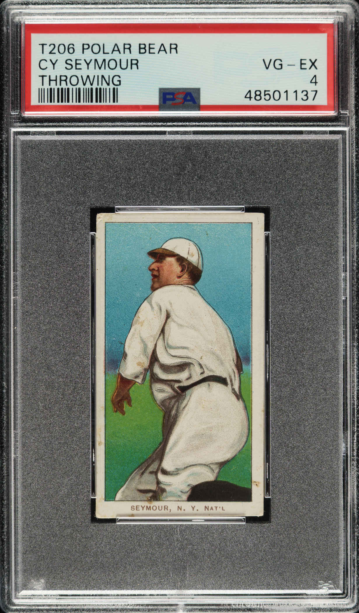 Lot # 606: 1909-1911 T206 White Border Cy Seymour Throwing PSA VG-EX 4 - Polar Bear Back