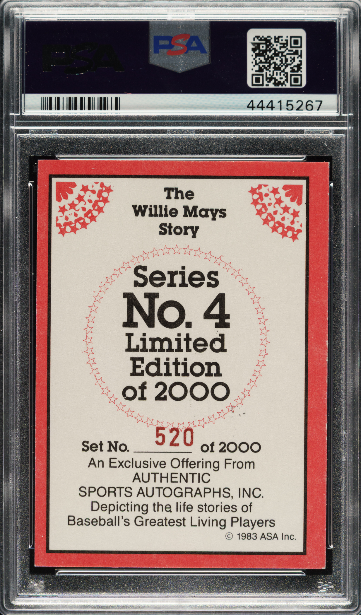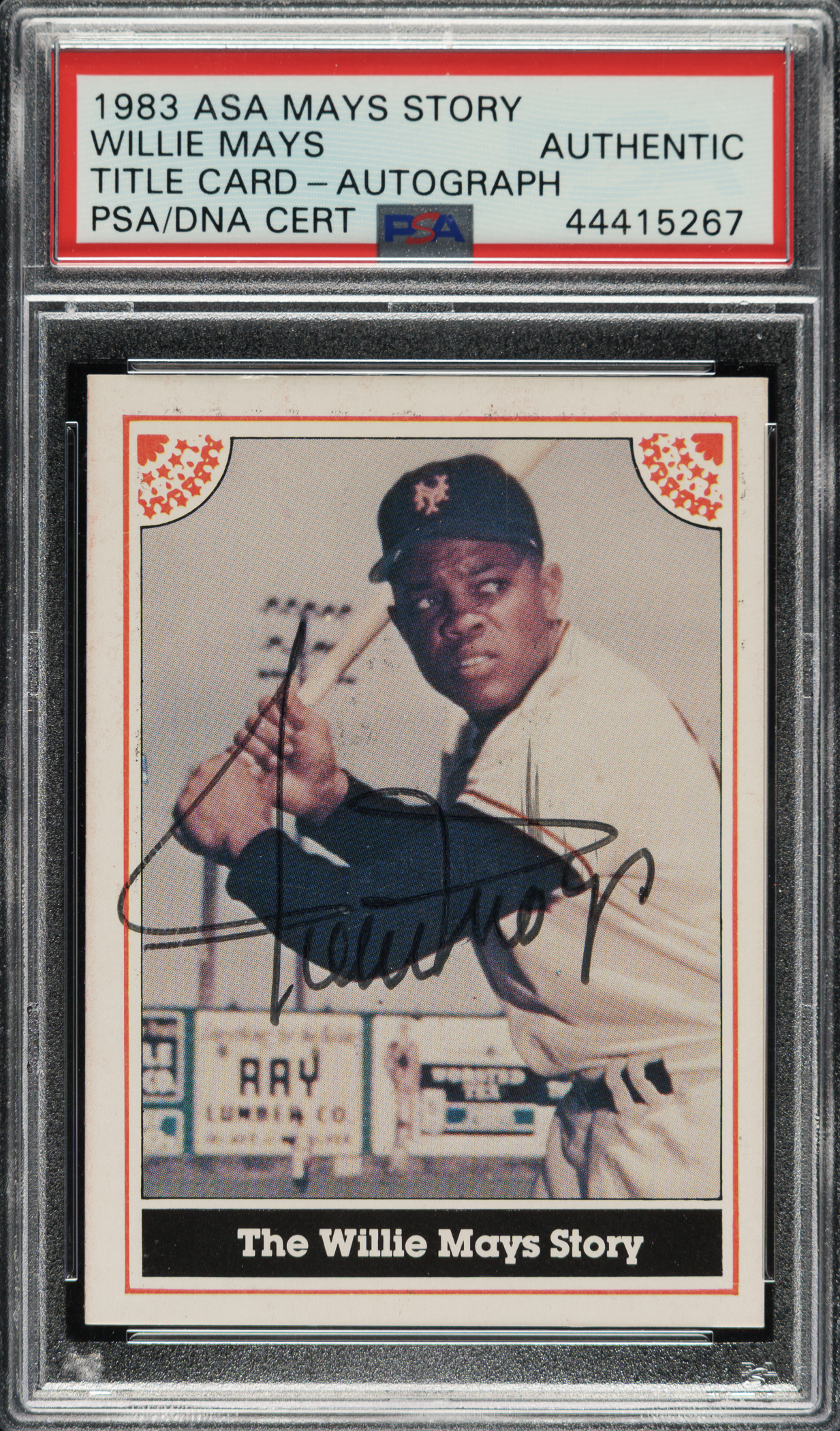PSA/DNA has encapsulated the card, grading the signature Authentic. New York Giants Hall of Famer Willie Mays.