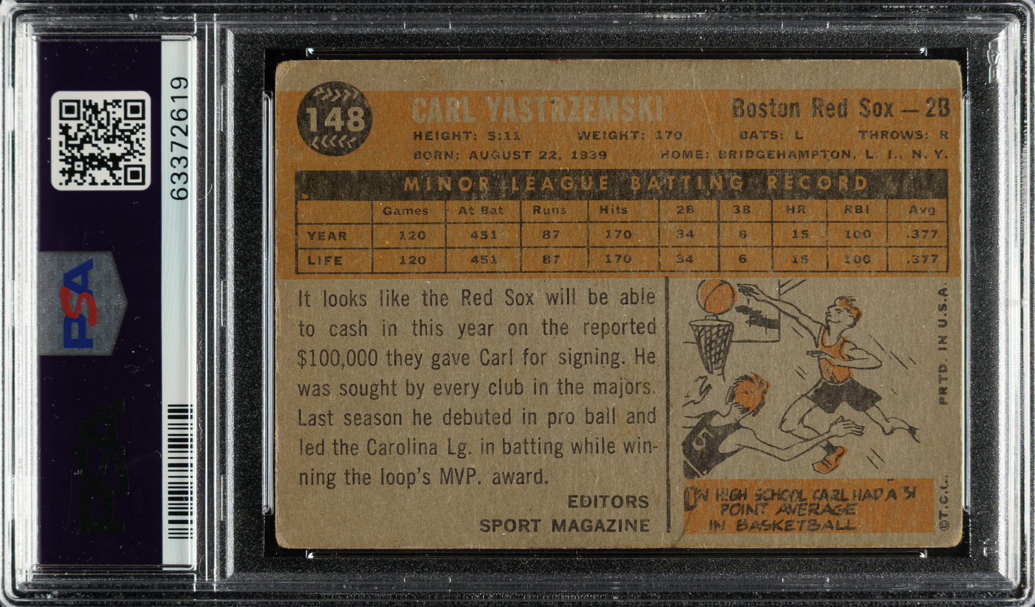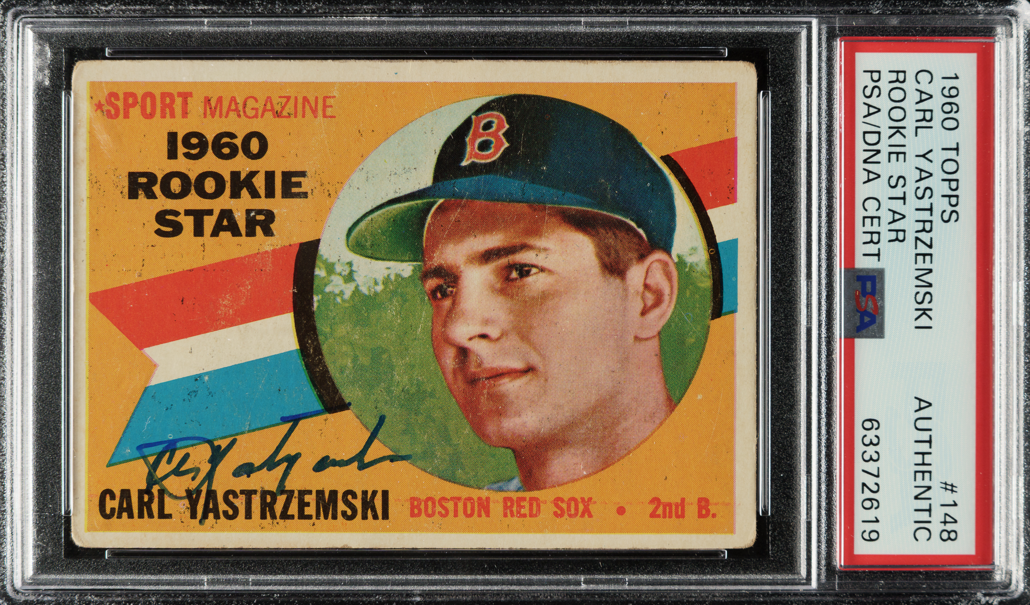 PSA/DNA has encapsulated the card, grading the signature Authentic. Boston Red Sox Hall of Famer Carl Yastrzemski.