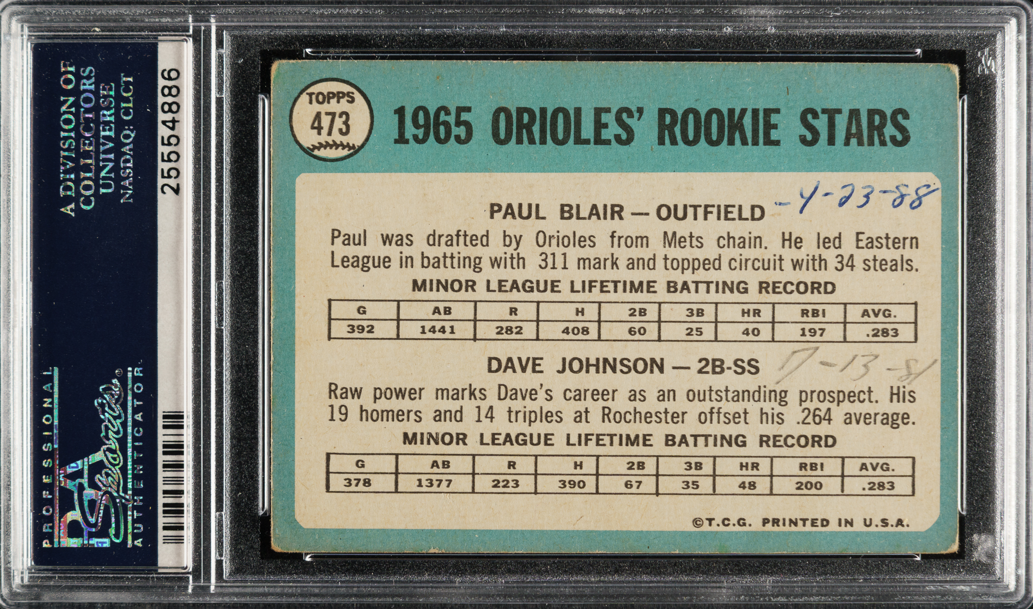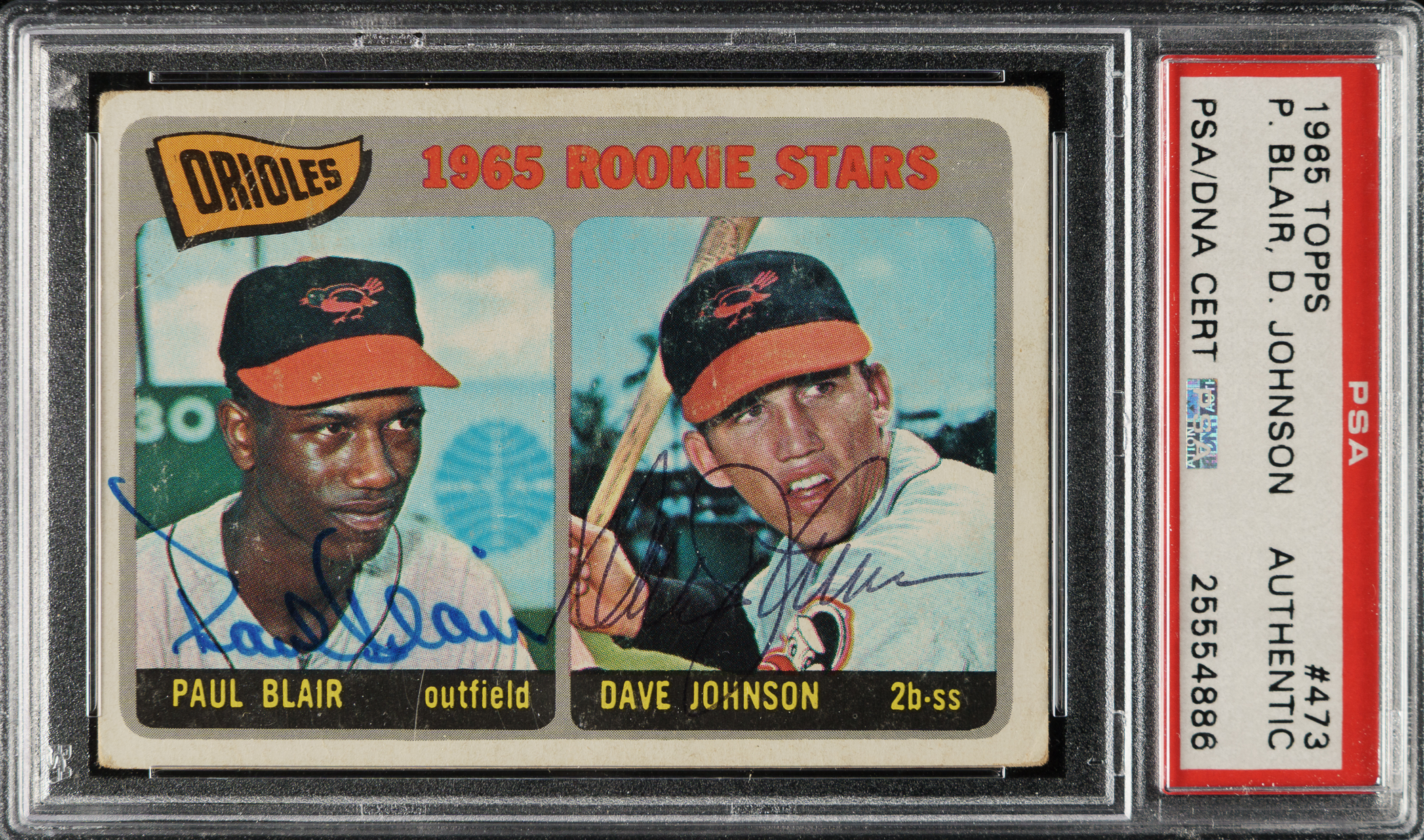 PSA/DNA has encapsulated the card, grading the signatures Authentic. Baltimore Orioles.