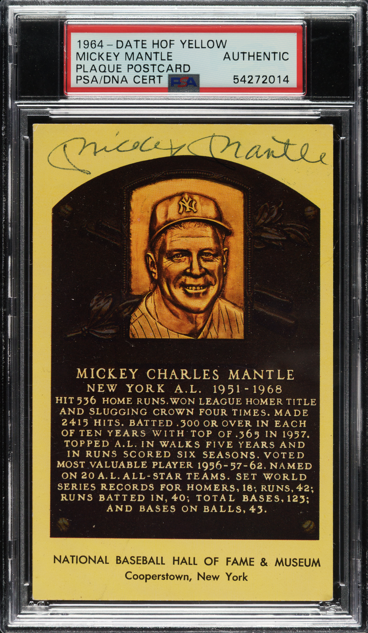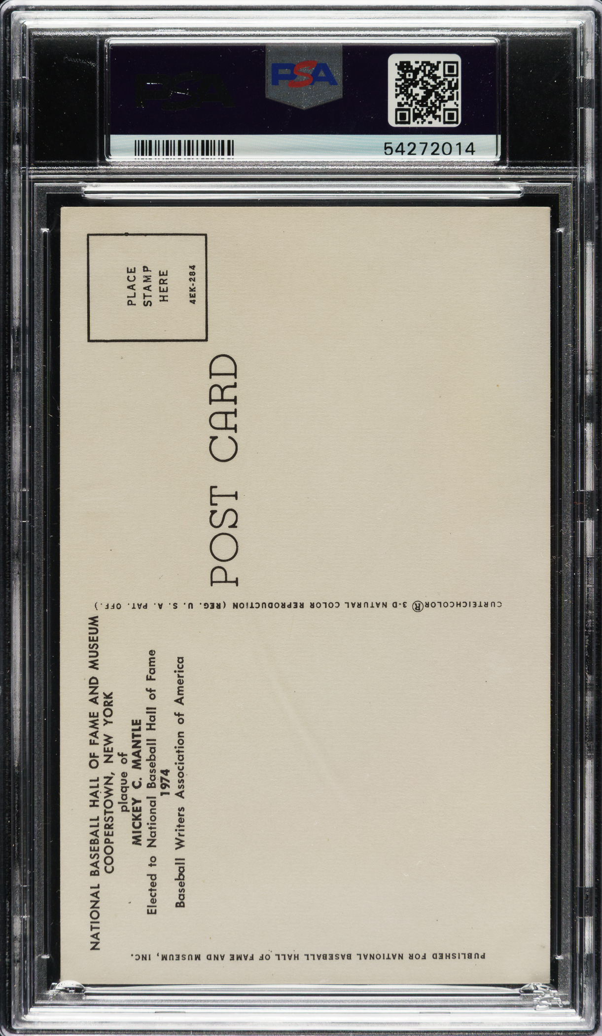 PSA/DNA has encapsulated the postcard, grading the signature Authentic. New York Yankees Hall of Famer Mickey Mantle.
