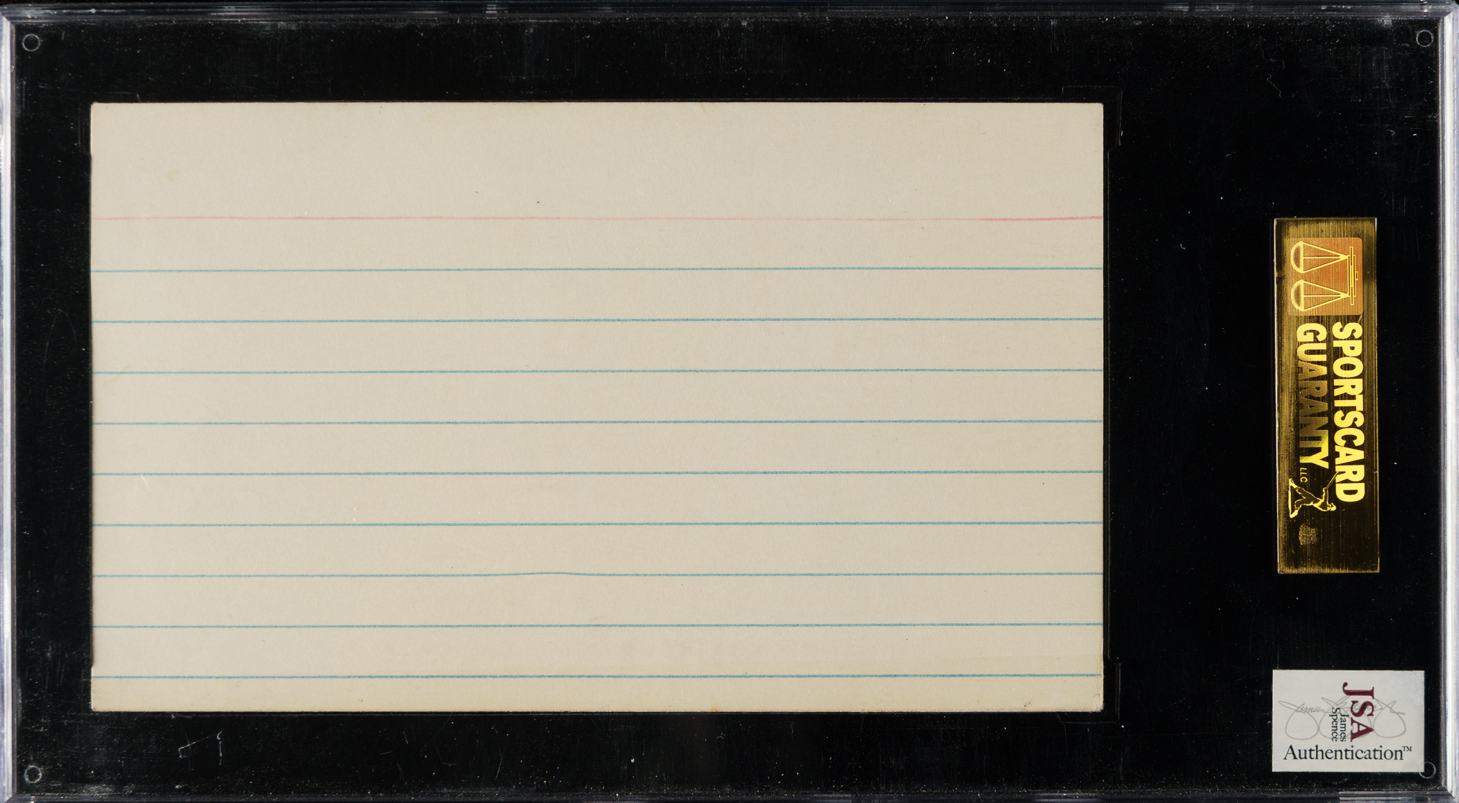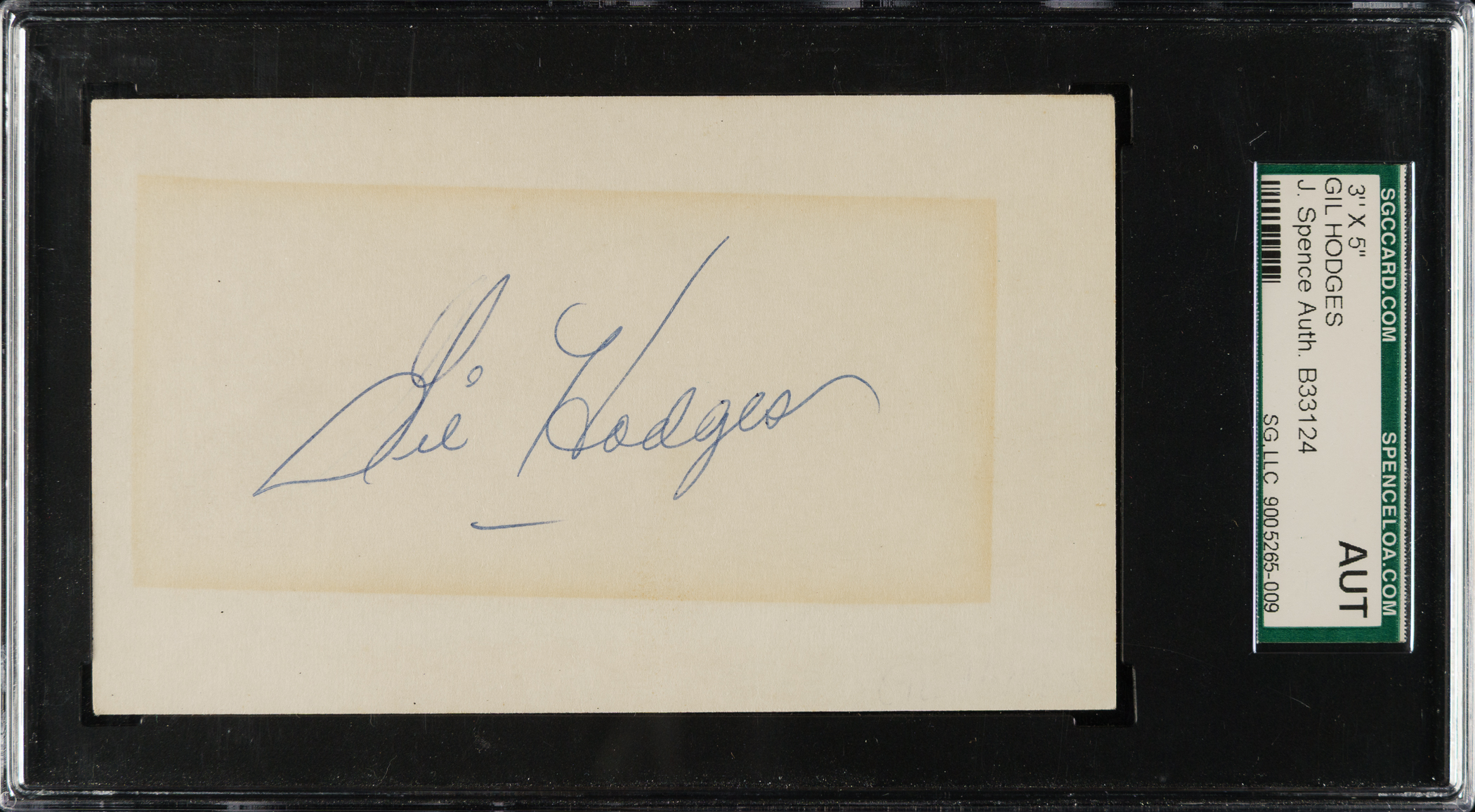 SGC/JSA has encapsulated the index card, grading the signature Authentic. Brooklyn Dodgers Hall of Famer Gil Hodges.