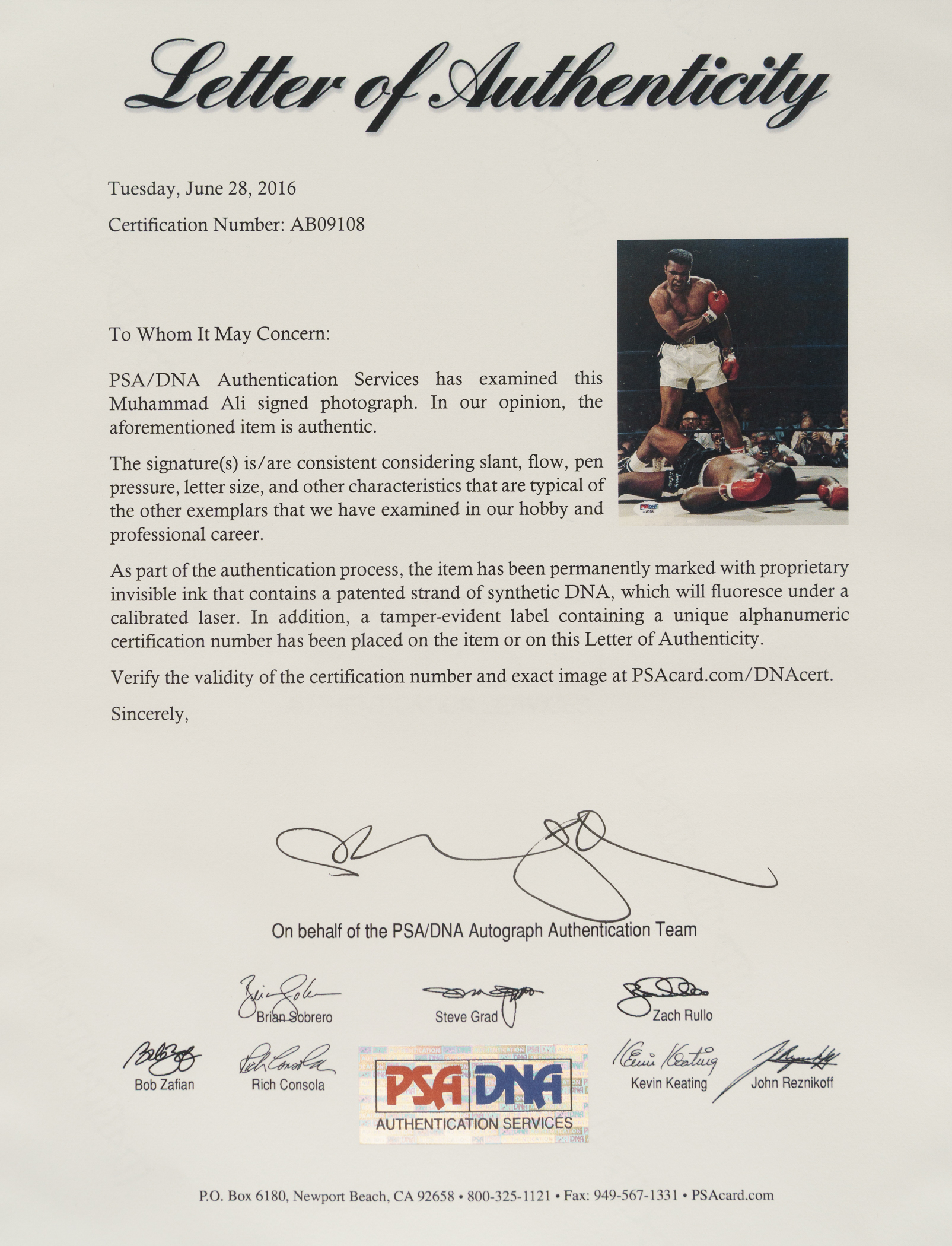 Boxing Hall of Famer Muhammad Ali signed photograph. Total dimensions: 8 x 10 Inches. Full LOA from PSA/DNA.