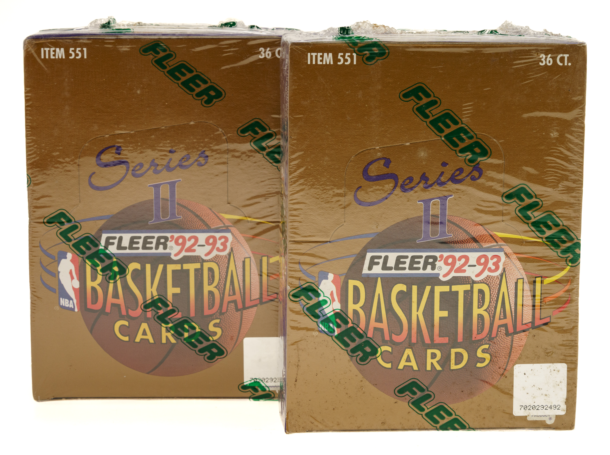 The two boxes come factory shrink-wrapped by Fleer. The size/weight of this item requires that there will be an additional shipping charge for this lot.