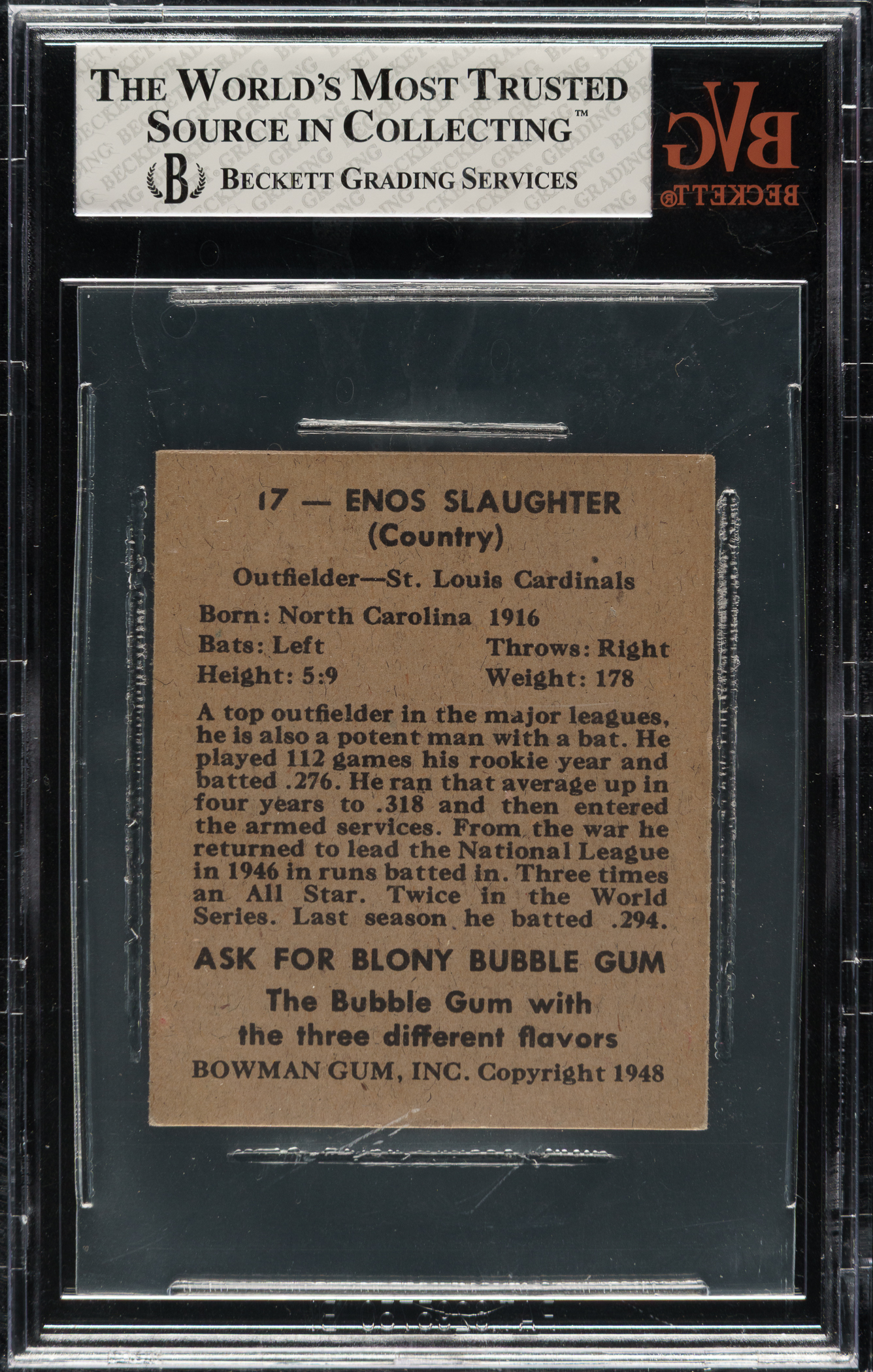 Graded EX 5 by BVG. St. Louis Cardinals Hall of Famer Enos Slaughter.
