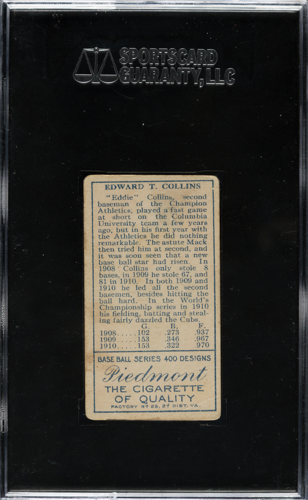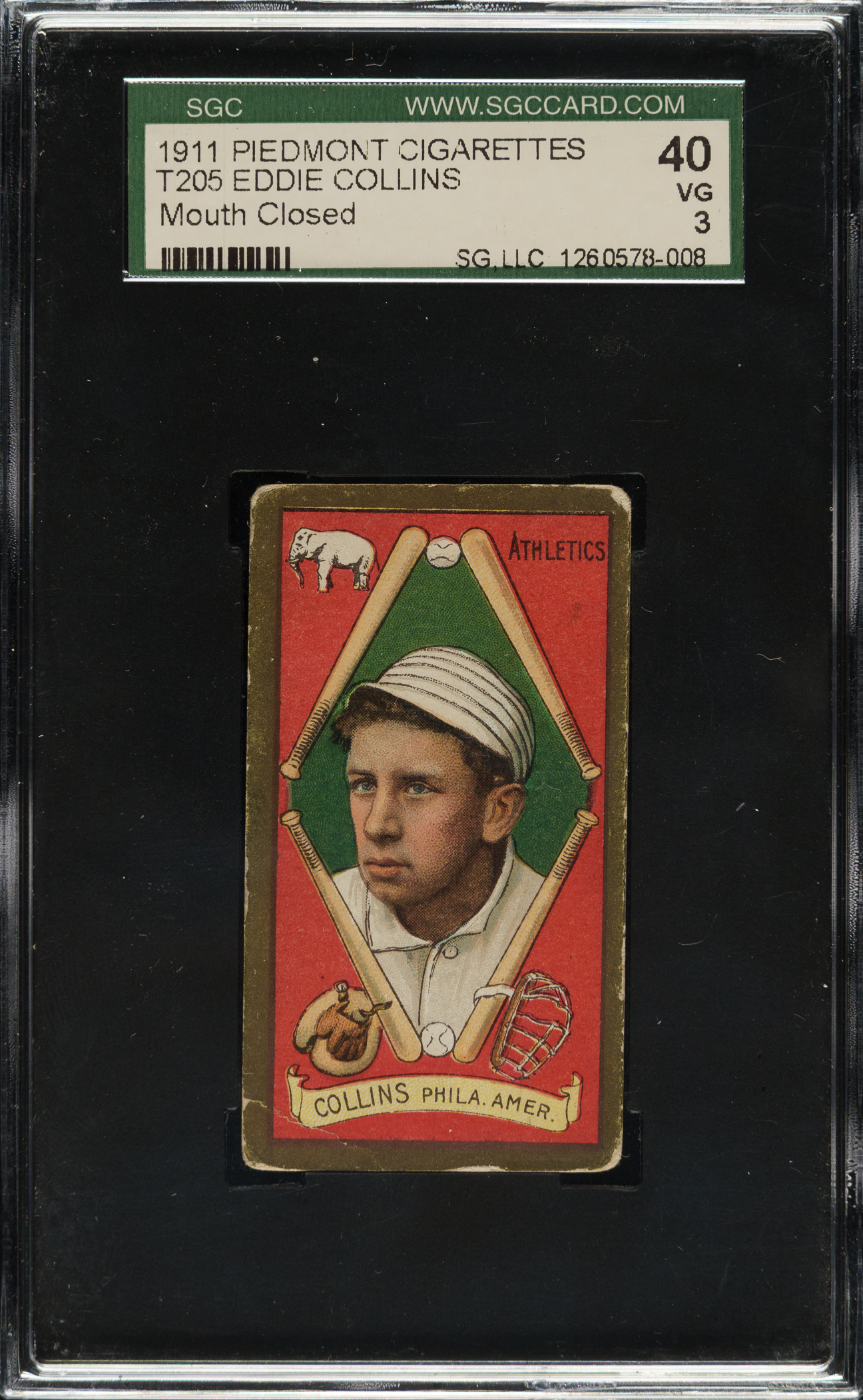 Graded VG 40 by SGC. Philadelphia Athletics Hall of Famer Eddie Collins.