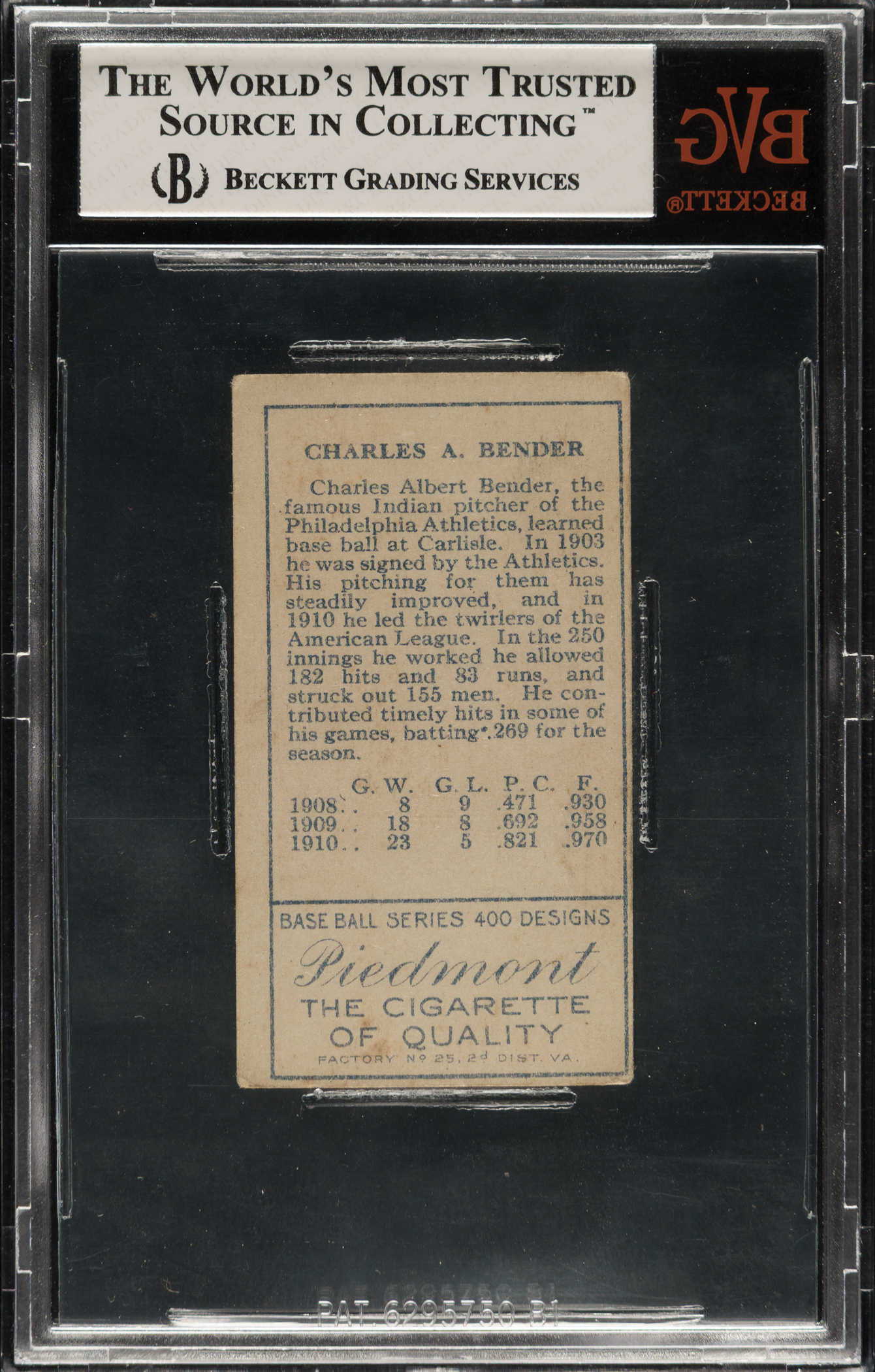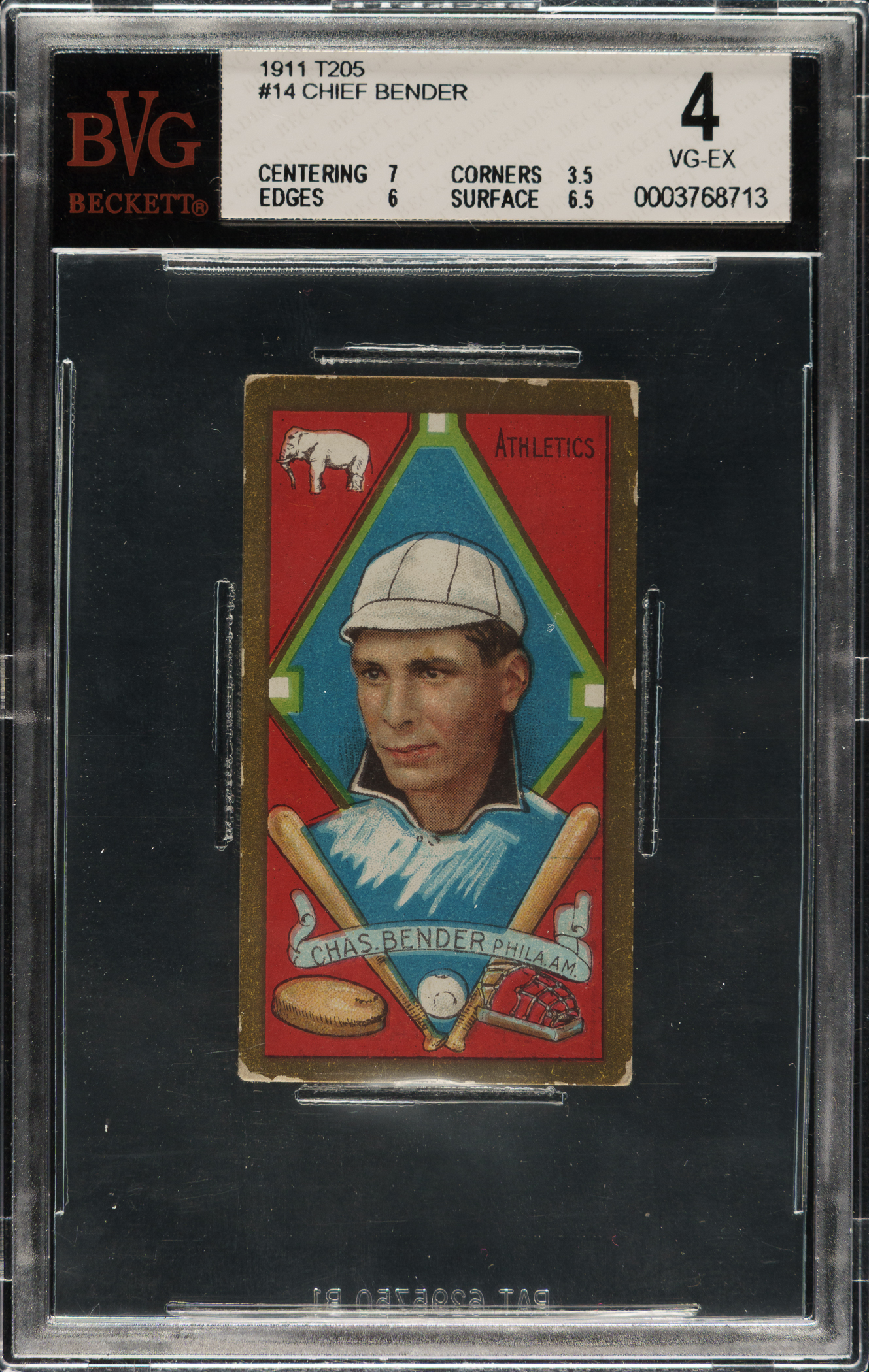 Graded VG-EX 4 by BVG. Philadelphia Athletics Hall of Famer Chief Bender.