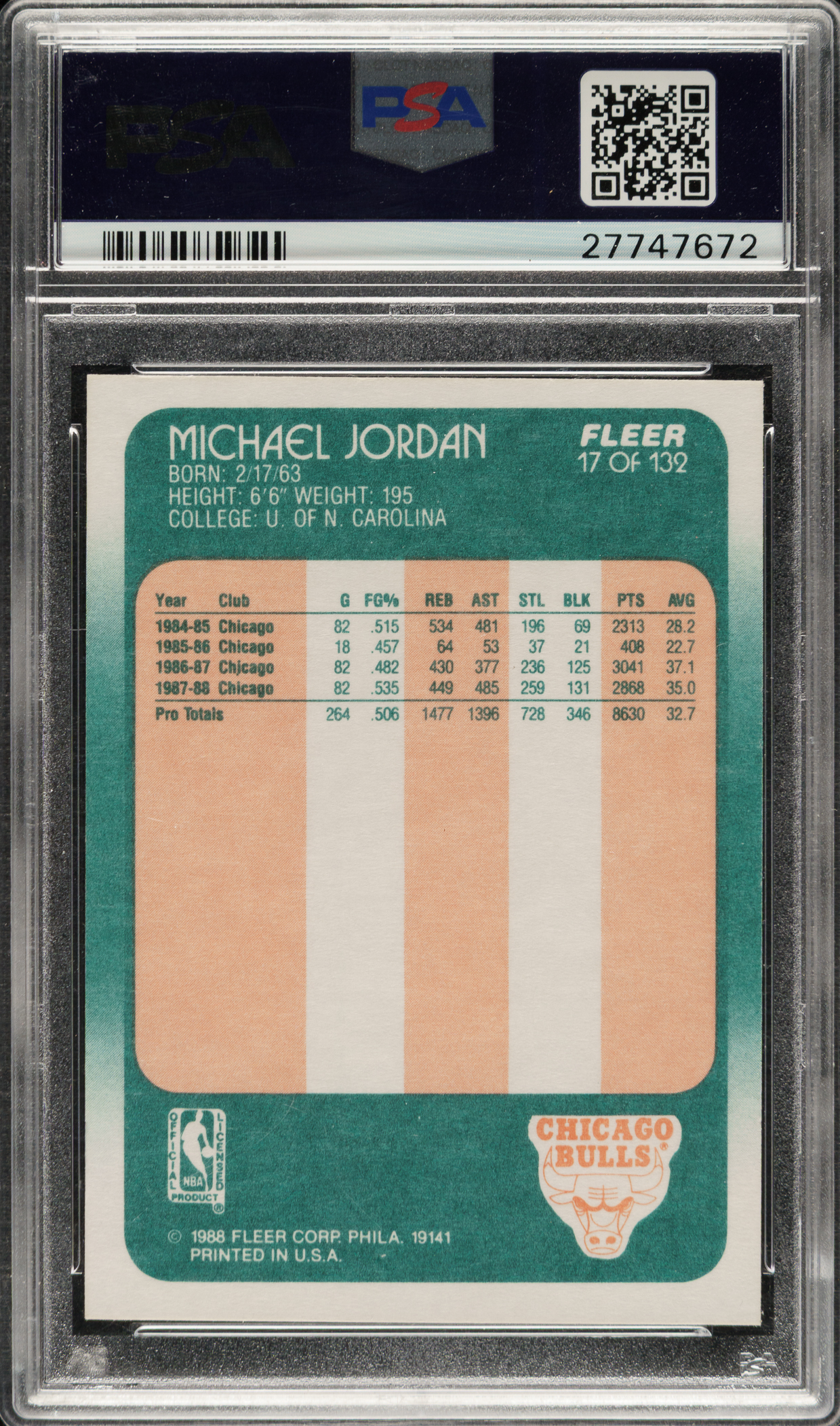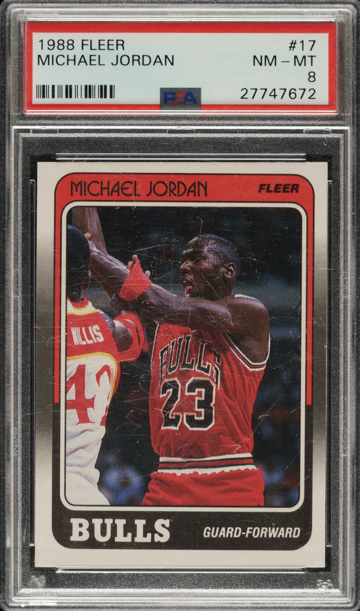 Graded NM-MT 8 by PSA. Chicago Bulls basketball Hall of Famer Michael Jordan.